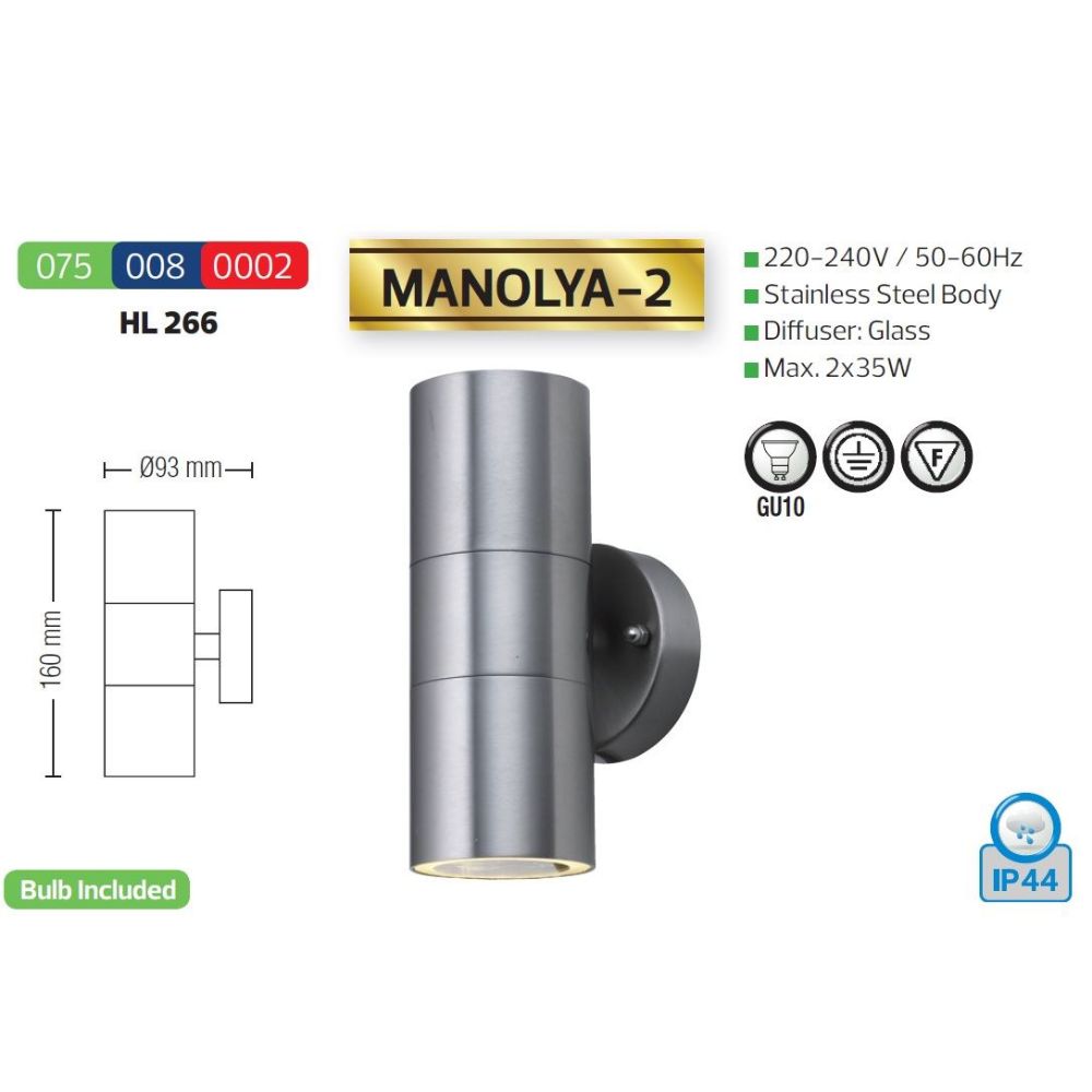 Aplica Perete Manolya-2 2xGU10 Max. 35W IP44 Aluminiu Chrom - Aplica led > Aplice de Exterior