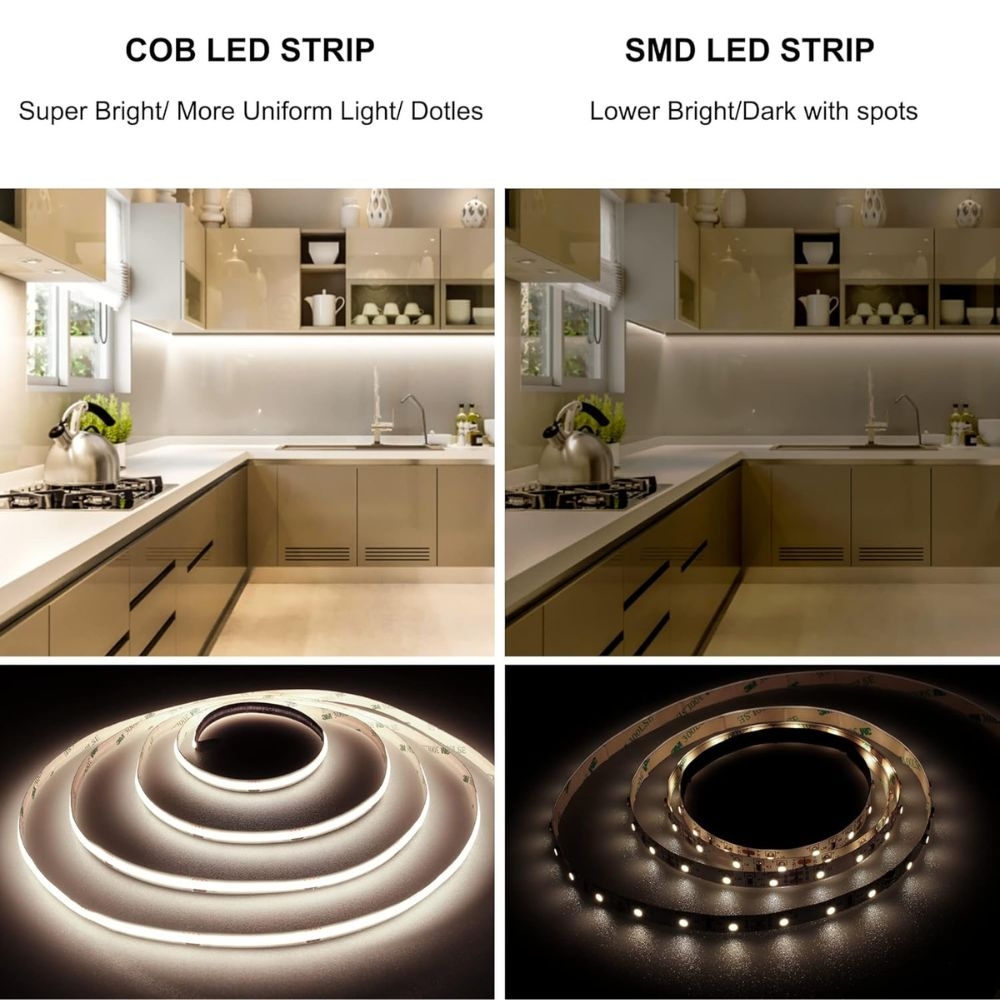 Tehnologia COB (Chip on Board) ofera o linie continua de lumina, fara puncte vizibile, datorita densitatii ridicate de 480 LED-uri pe metru. Lumina neutra 4000K este ideala pentru spatii functionale precum bucatarii, holuri, birouri, spatii comerciale, scafe, nise si tavane false.