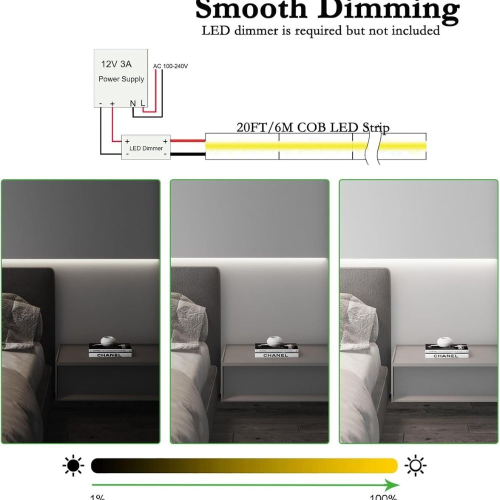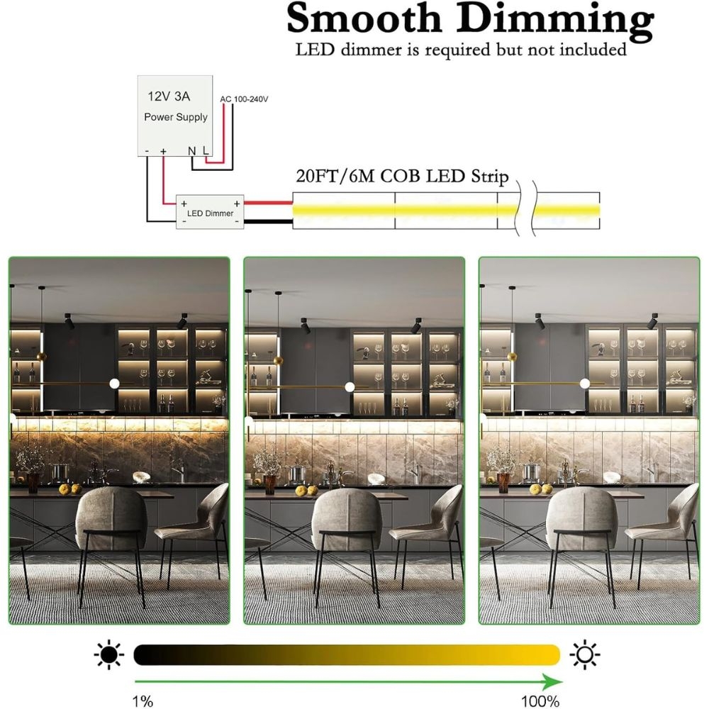 Banda LED COB 10W/m îmbină performanța cu versatilitatea. Cu 320 diode luminiscente/m și lumină disponibilă în 3000K (cald), 4200K (neutru), sau 6400K (rece), această bandă LED transformă orice spațiu, oferind confort vizual și o atmosferă plăcută. Perfectă pentru accentuarea detaliilor în bucătării, livinguri sau birouri, se taie și se îmbină ușor pentru o instalare personalizată. Siguranță la 24V și durată de viață de 20000 ore. Creează scenarii luminoase unice, îmbunătățind estetica și funcționalitatea locuinței tale.