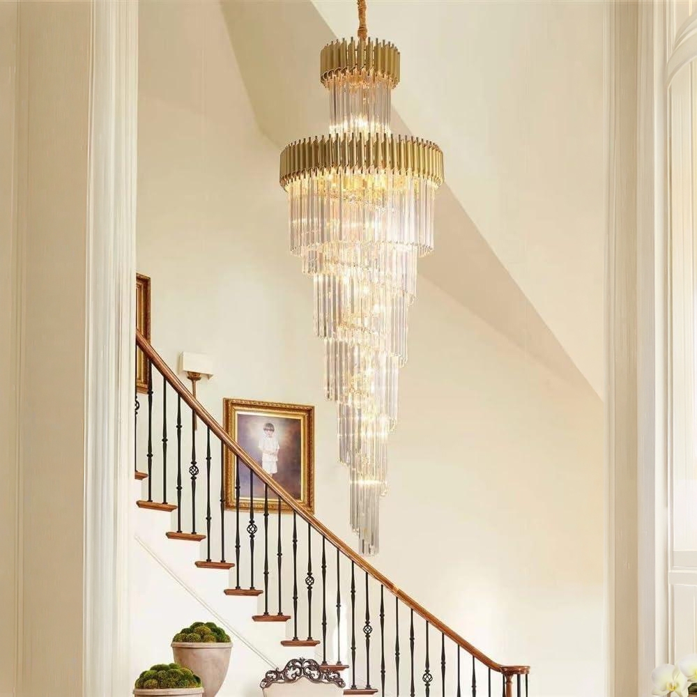Transformă orice spațiu într-o adevărată declarație de eleganță cu acest candelabru premium din cristal, conceput special pentru interioare înalte și spectaculoase.