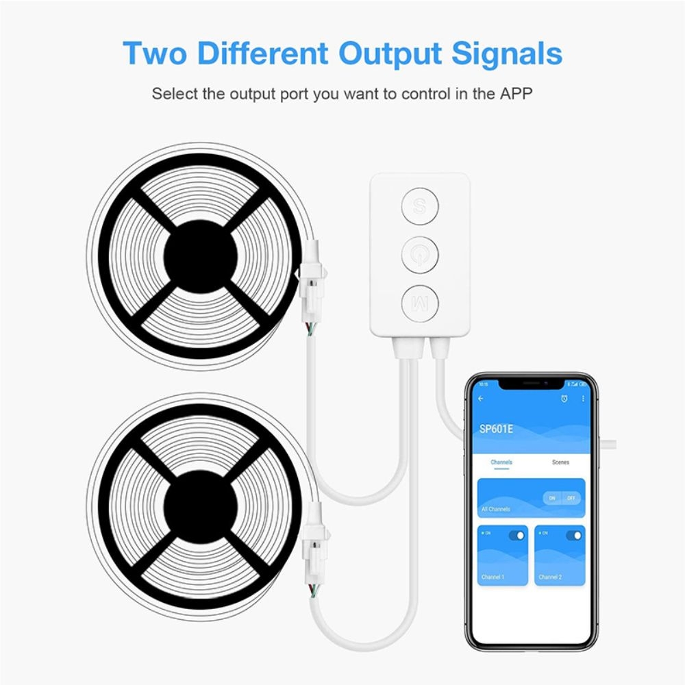 Controllerul pentru banda LED Pixel SP601E este o solutie avansata pentru controlul benzilor LED digitale, ideal pentru proiecte de iluminat decorativ, ambiental sau dinamic. Acesta permite control precis al efectelor luminoase, culorilor si animatiilor, oferind o experienta vizuala spectaculoasa.