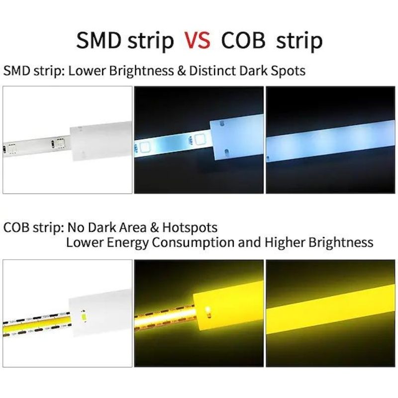 • Banda flexibila cu LED-uri COB are o lungime de 5 metri, o putere totala de 60W (12W/metru).