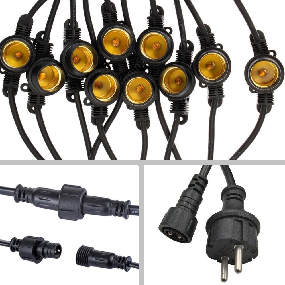 Cablul electric rezistent 2x1 mm si protectia IP44 permit utilizarea atat la interior cat si la exterior. Fasungurile sunt dispuse la 0,5 metri distanta pentru un efect luminos mai dens, iar ghirlanda este interconectabila pentru extinderea iluminatului pe suprafete mai mari. Functioneaza cu orice bec E27 si poate fi utilizata pe tot parcursul anului.