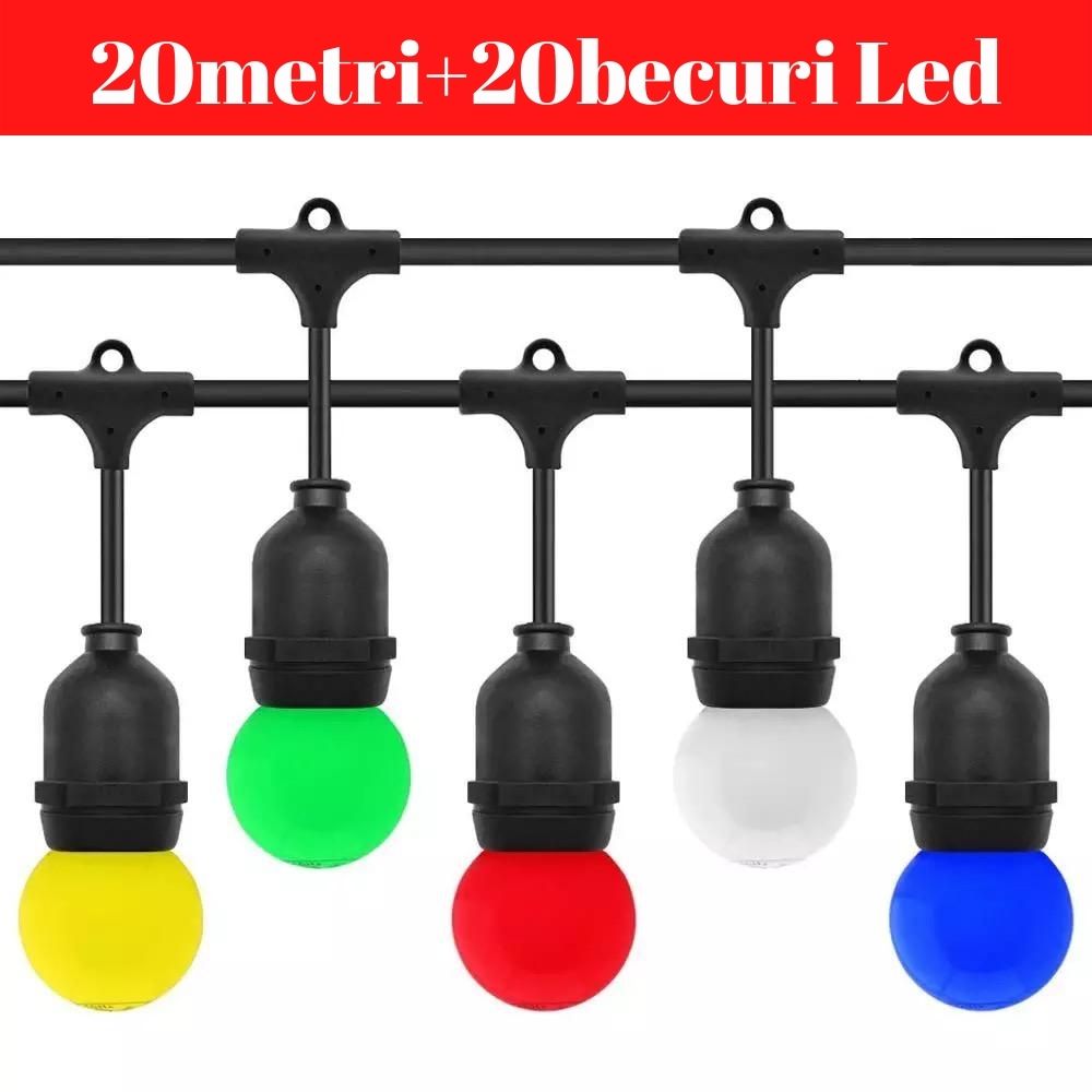 Ghirlanda luminoasa 20m cu 20 becuri colorate LED E27 IP44