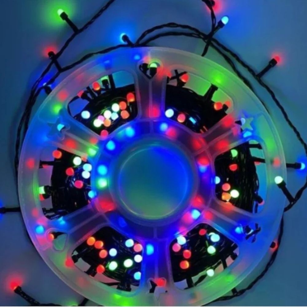 Instalatia brad LED multicolor 100m cu 1000 LED rotunde si geam laptos este destinata decorurilor mari si spectaculoase. Geamul laptos difuzeaza lumina, oferind un efect uniform si o vizibilitate superioara fata de LED-urile normale. LED-urile sunt rotunde, tip „frosted”, ceea ce face lumina mai placuta si mai puternica vizual.