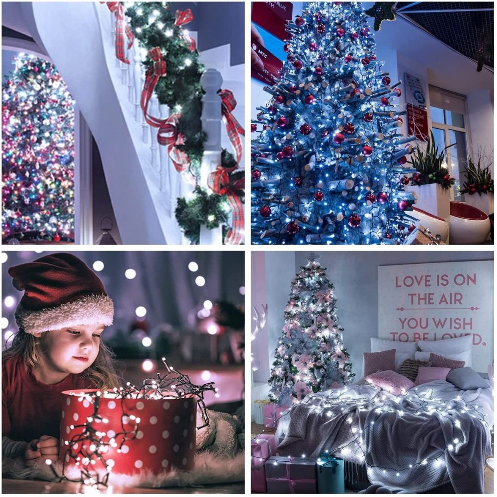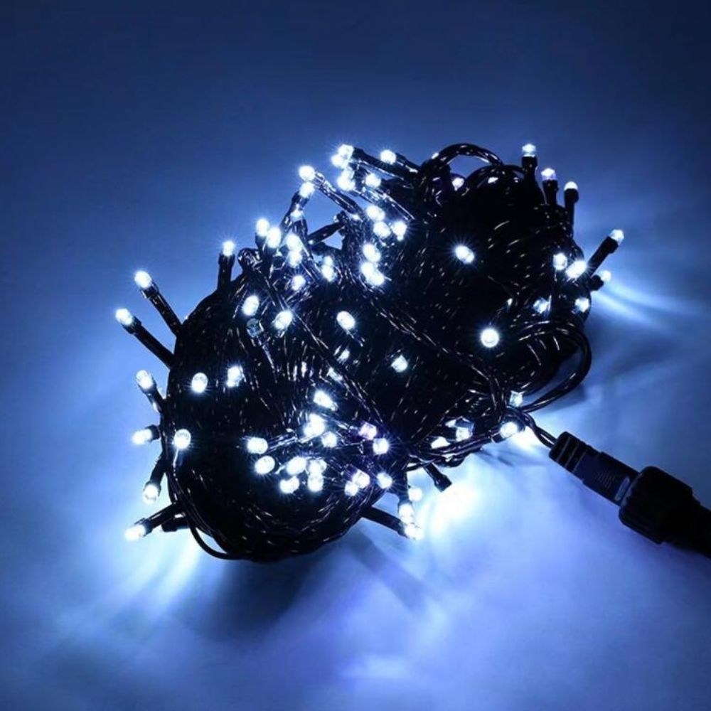 Instalatia Craciun interior alb rece 9m, 100 LED cu 8 jocuri de lumini creeaza un decor modern, luminos si elegant, ideal pentru amenajarile festive din locuinta. Lumina alb rece ofera un efect intens si cristalin, perfect pentru brad, geamuri, scari sau zonele de decor interior.