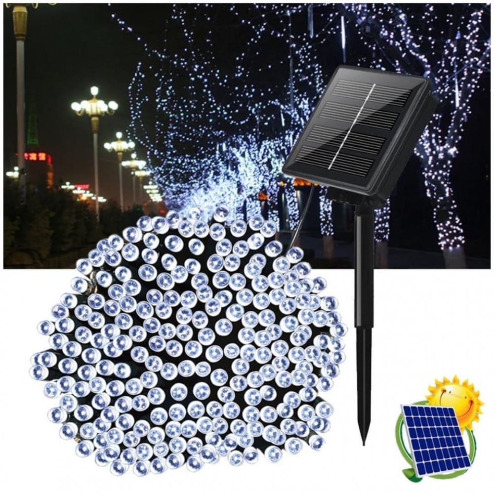Instalatii craciun exterior alb rece 22m, 200 LED solara cu telecomanda