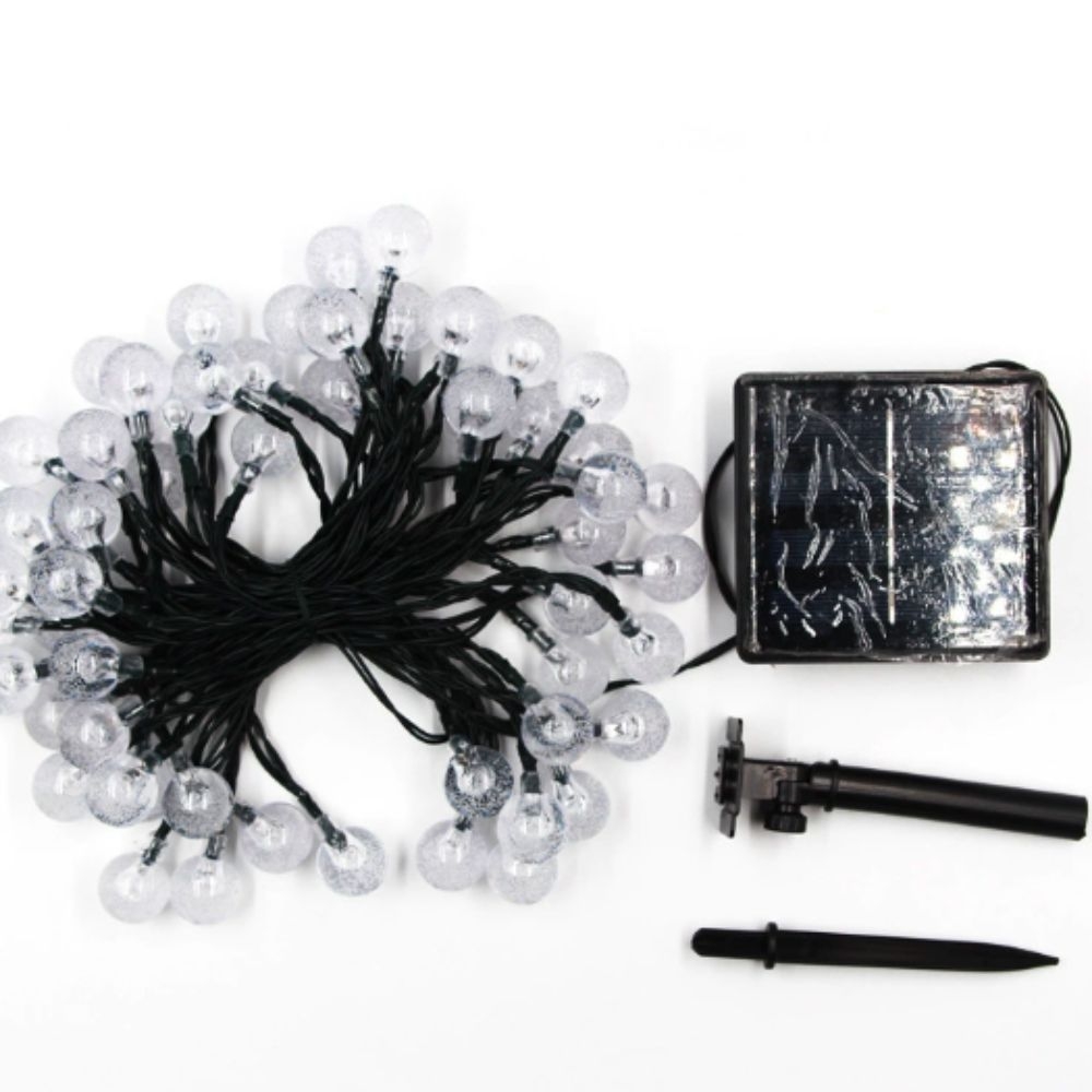 Fiecare LED este imbracat intr-o biluta transparenta din acril, oferind un efect vizual elegant, care refracta lumina si creeaza un joc de sclipiri delicat. LED-urile se aprind automat atunci cand se lasa intunericul, iar pe panoul solar ai buton pentru selectarea modurilor de iluminare (multiple jocuri de lumini + mod static).