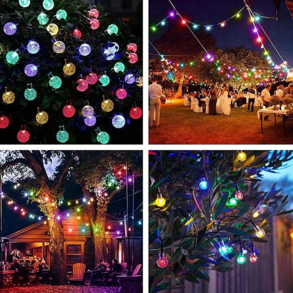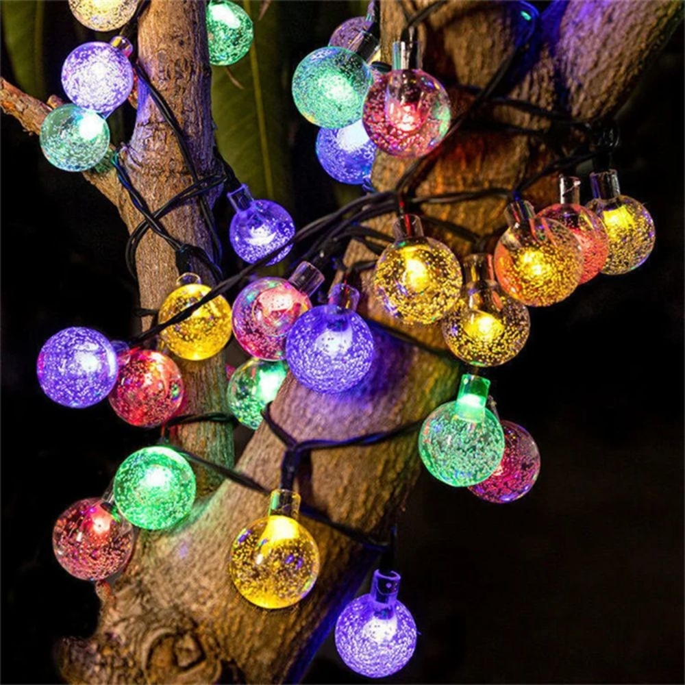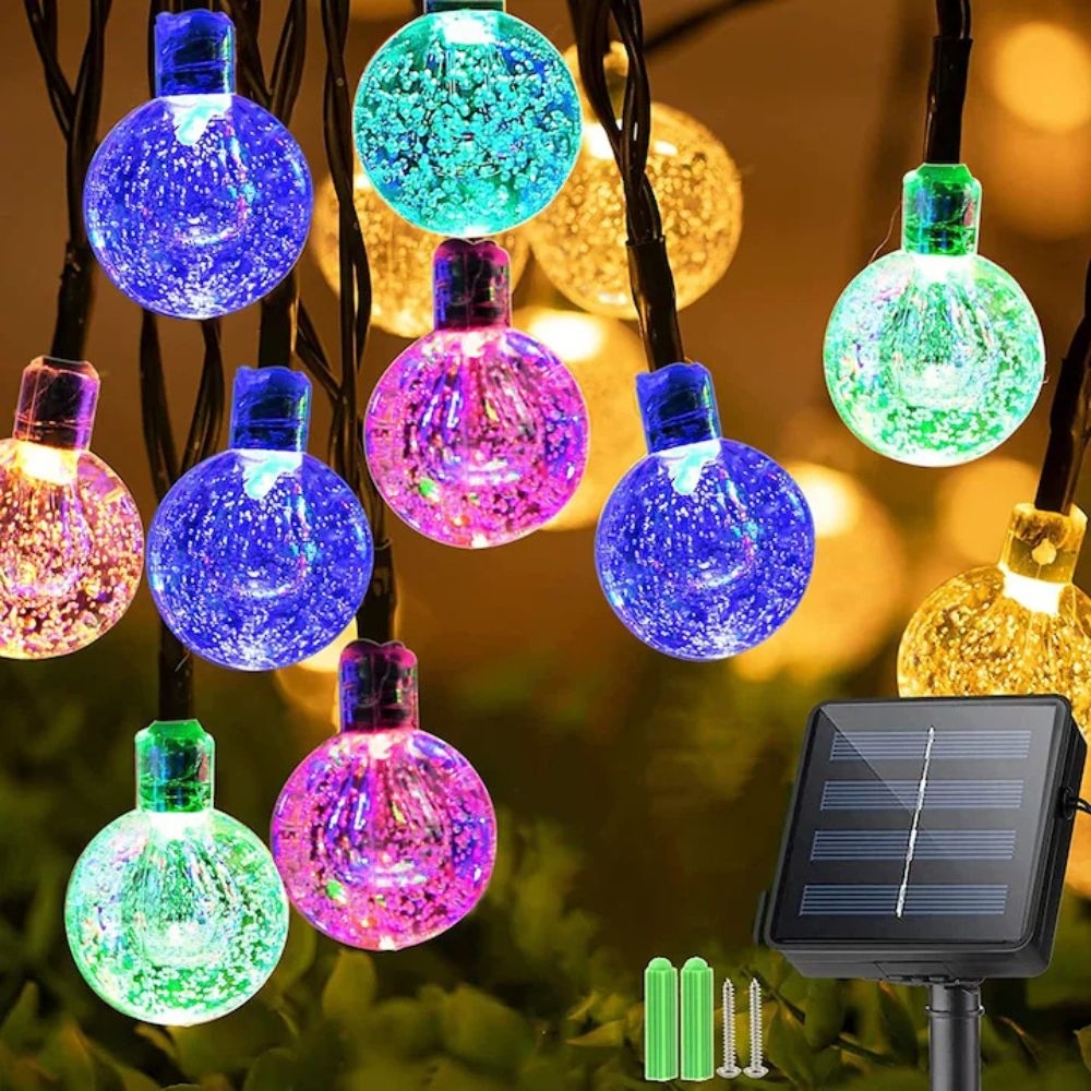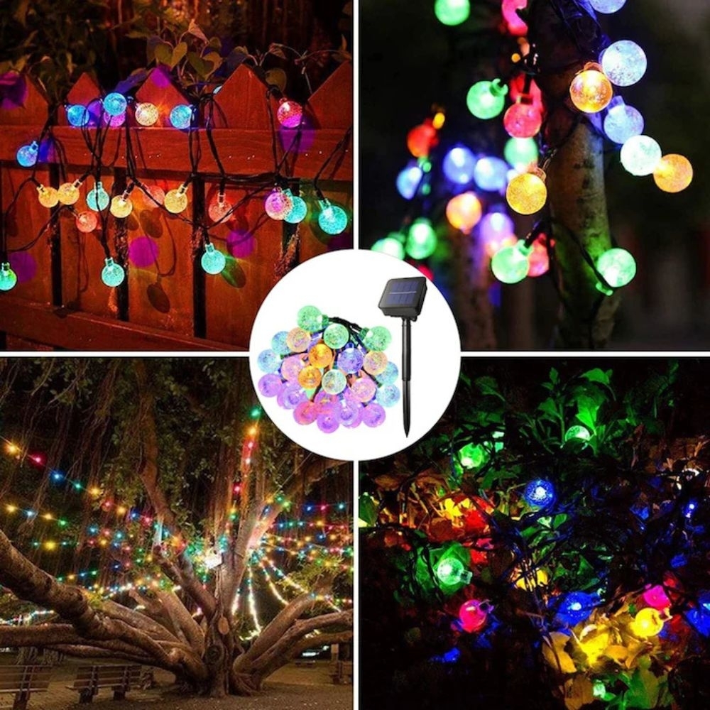 Instalatii craciun exterior multicolor 6.5m, 50 LED solara bilute transparente
