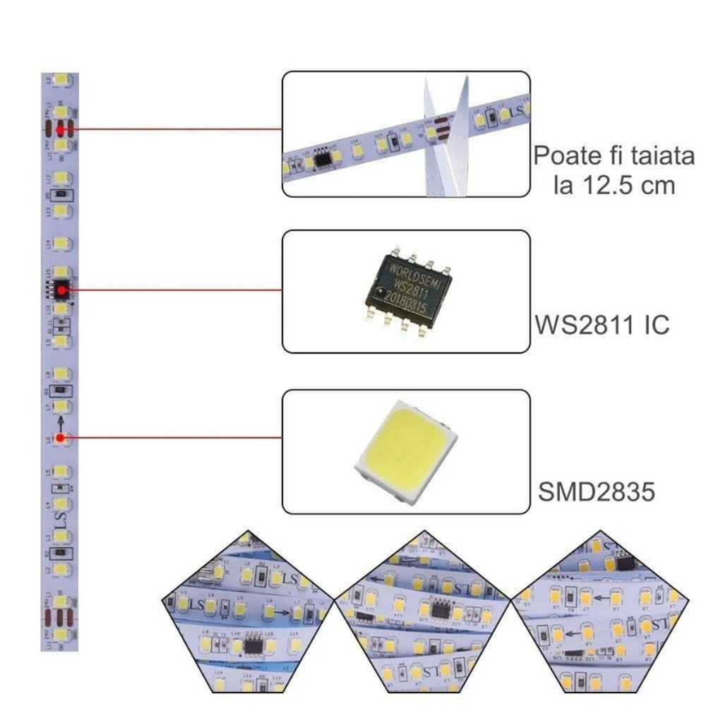 Banda LED functioneaza la 24V, are o densitate de 120 LED-uri pe metru si emite lumina calda de 3000K, creand o atmosfera primitoare si sofisticata. Lungimea totala a benzii este de 10 metri, fiind potrivita pentru proiecte de dimensiuni medii si mari.