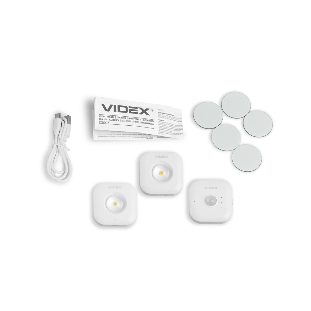 Set 3 Lămpi de Noapte LED VIDEX VL-NL075-21, 0.5W x2, 3000K/4500K/6500K, Alb, Cu Senzor