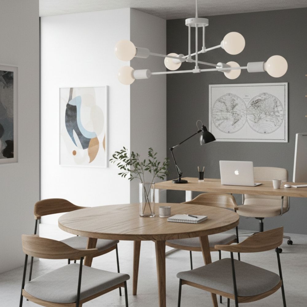 Lustra ASTRA alb 6xE27 este varianta clean și minimalistă a modelului, perfectă pentru spații luminoase și aerisite.