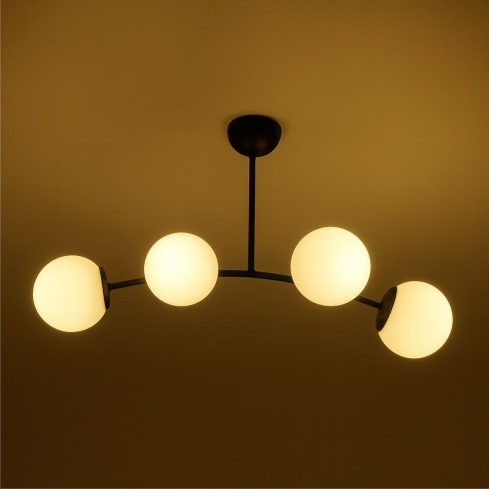 Lustra DL75D054B este alegerea ideală pentru spații în care ai nevoie de iluminare eficientă, dar și de un design modern echilibrat. Configurația cu 4 globuri din sticlă opal asigură o distribuție uniformă a luminii, fiind perfectă pentru camere mai mari sau zone centrale ale locuinței.