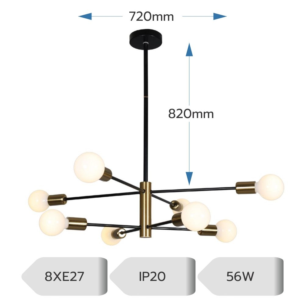 Designul modern, cu structură compactă și bine echilibrată, este completat de cele 8 surse de lumină dispuse armonios, oferind atât funcționalitate, cât și impact vizual.