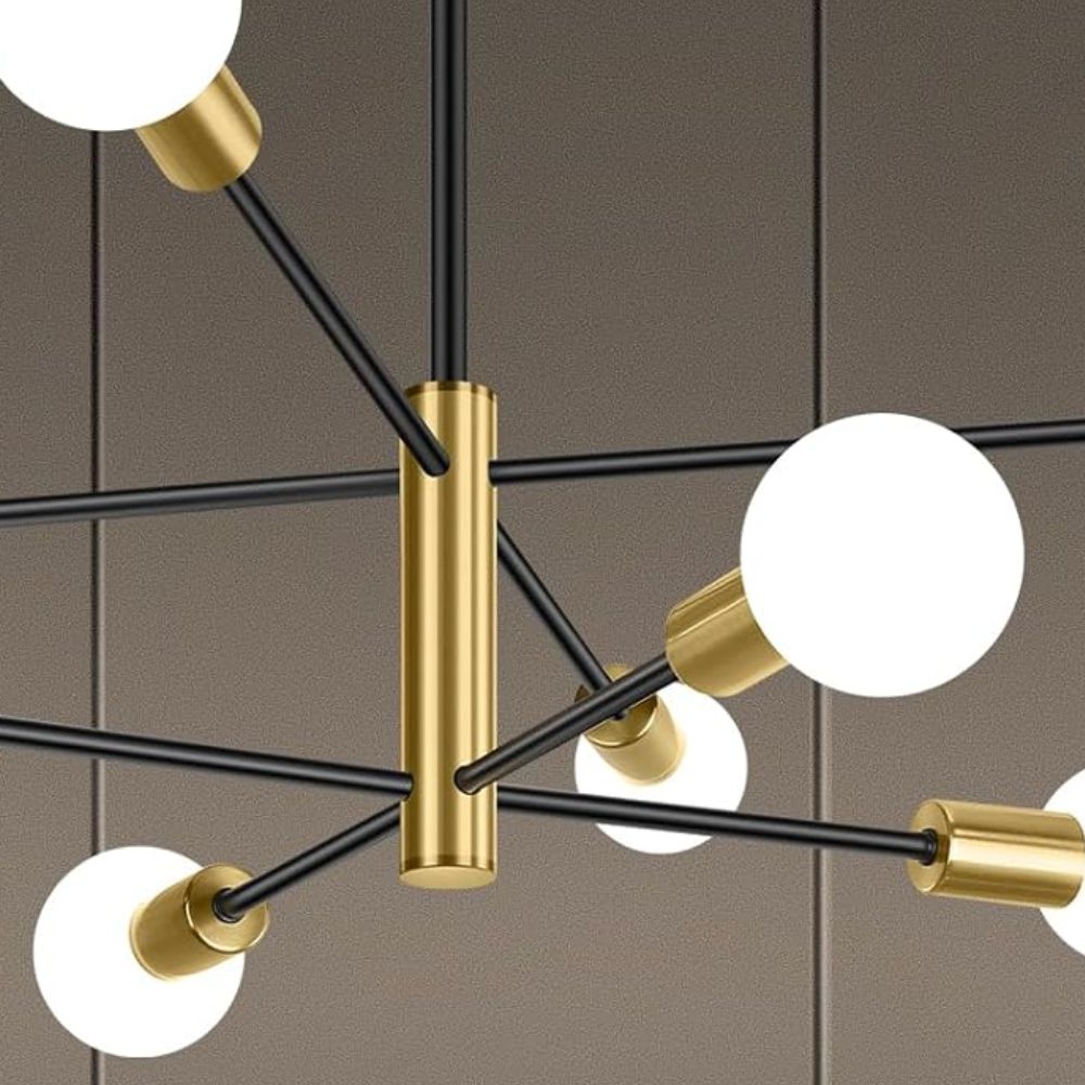 Combinația dintre negru și auriu adaugă un aer sofisticat, transformând lustra într-un element central al încăperii.