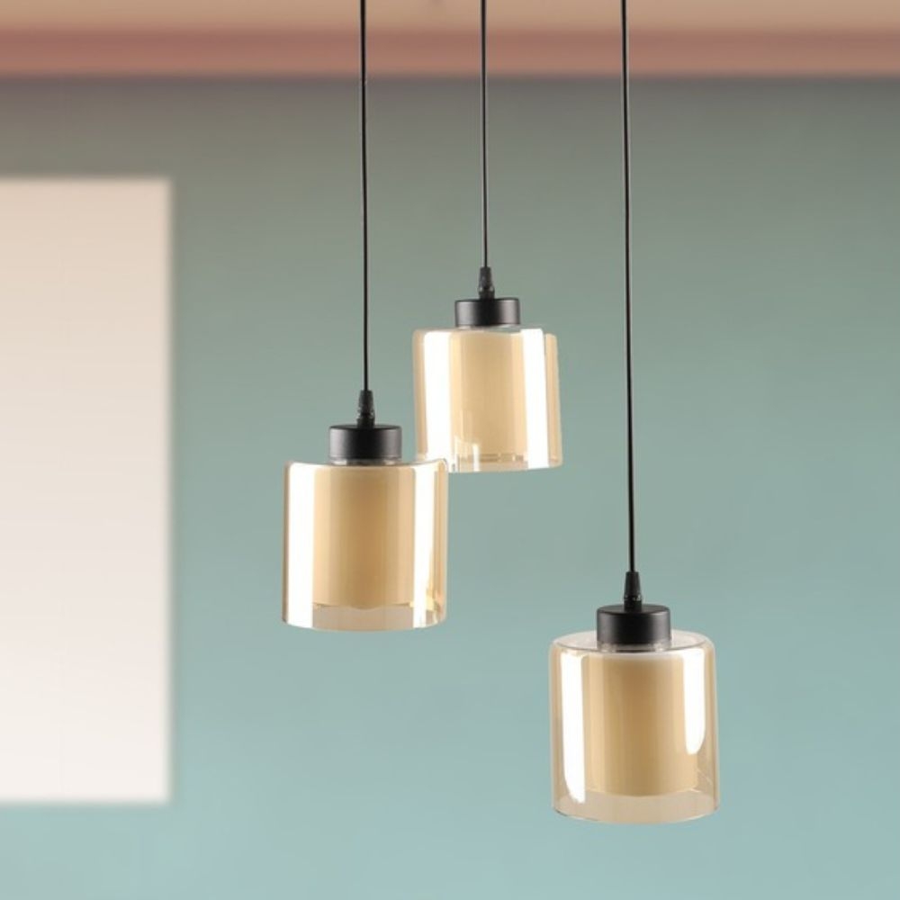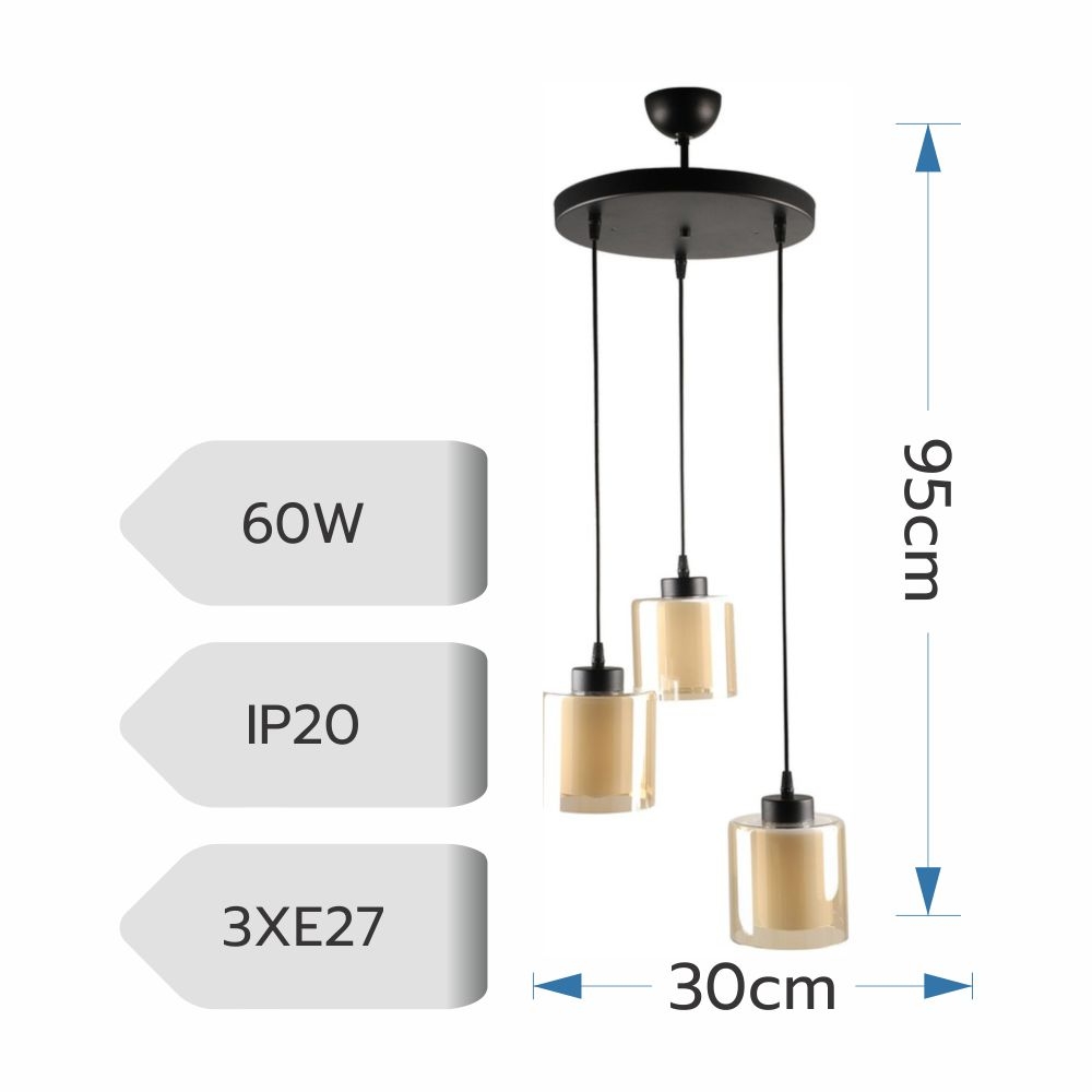Lustră pendul 3xE27 cu sticlă fumurie și design modern