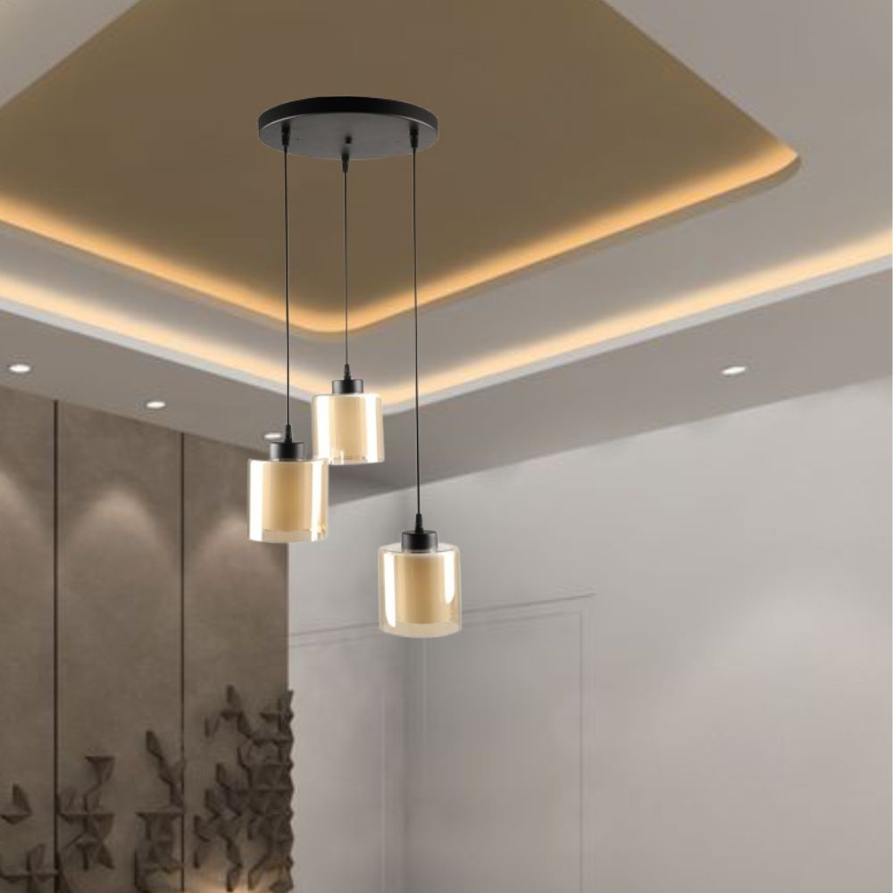 Alege un iluminat modern și elegant cu această lustră pendul cu 3 surse de lumină, evidențiată prin abajururi din sticlă fumurie și structură metalică neagră.