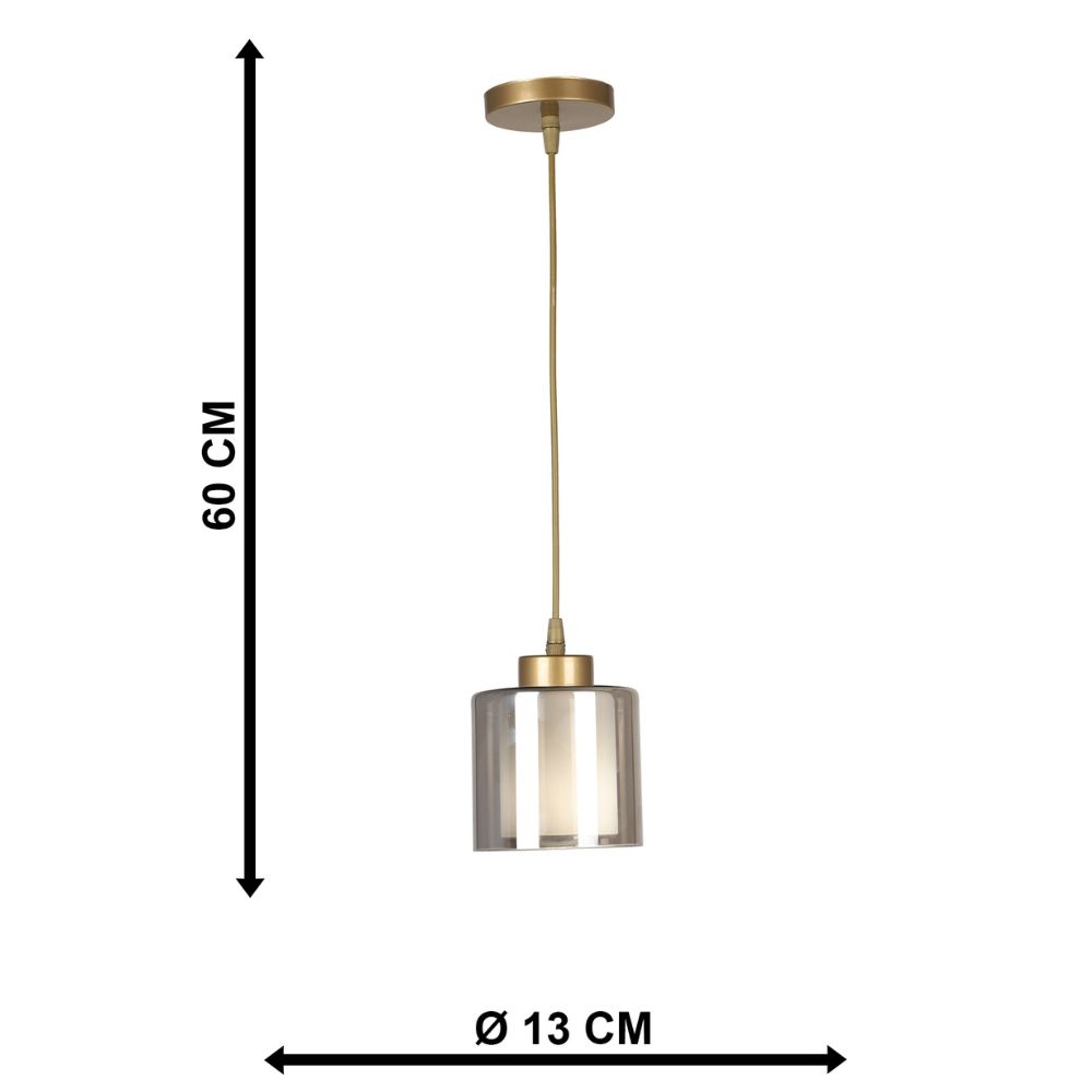 Lustră pendul aurie cu abajur din sticlă fumurie E27
