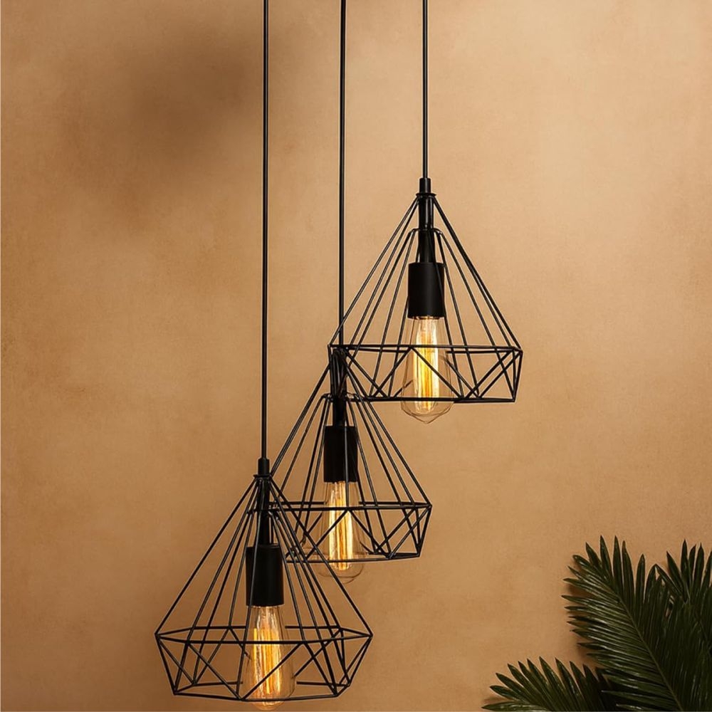 Transformă orice spațiu într-un decor modern cu această lustră pendul industrială negru-auriu, un model care combină designul geometric cu accente elegante pentru un efect vizual premium.