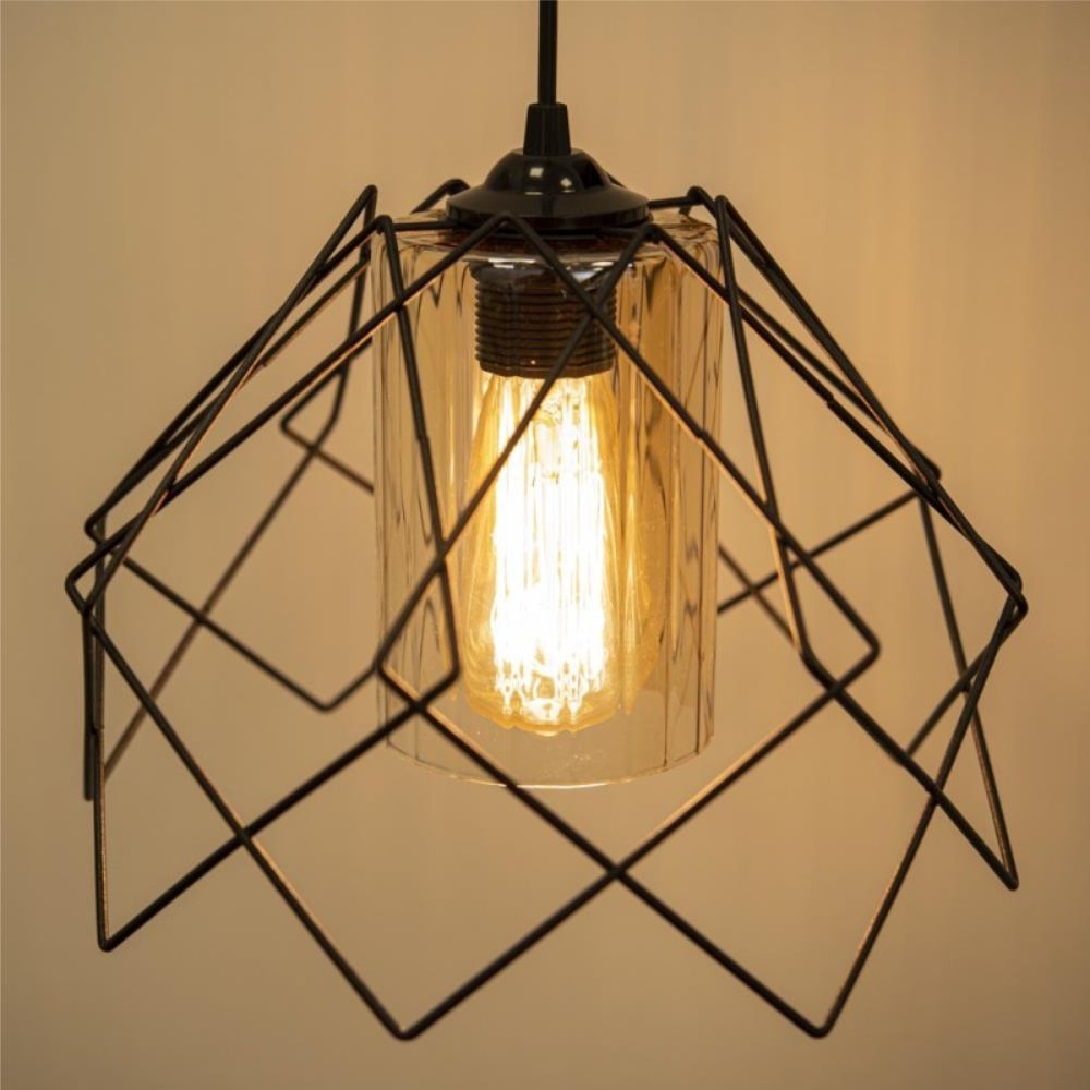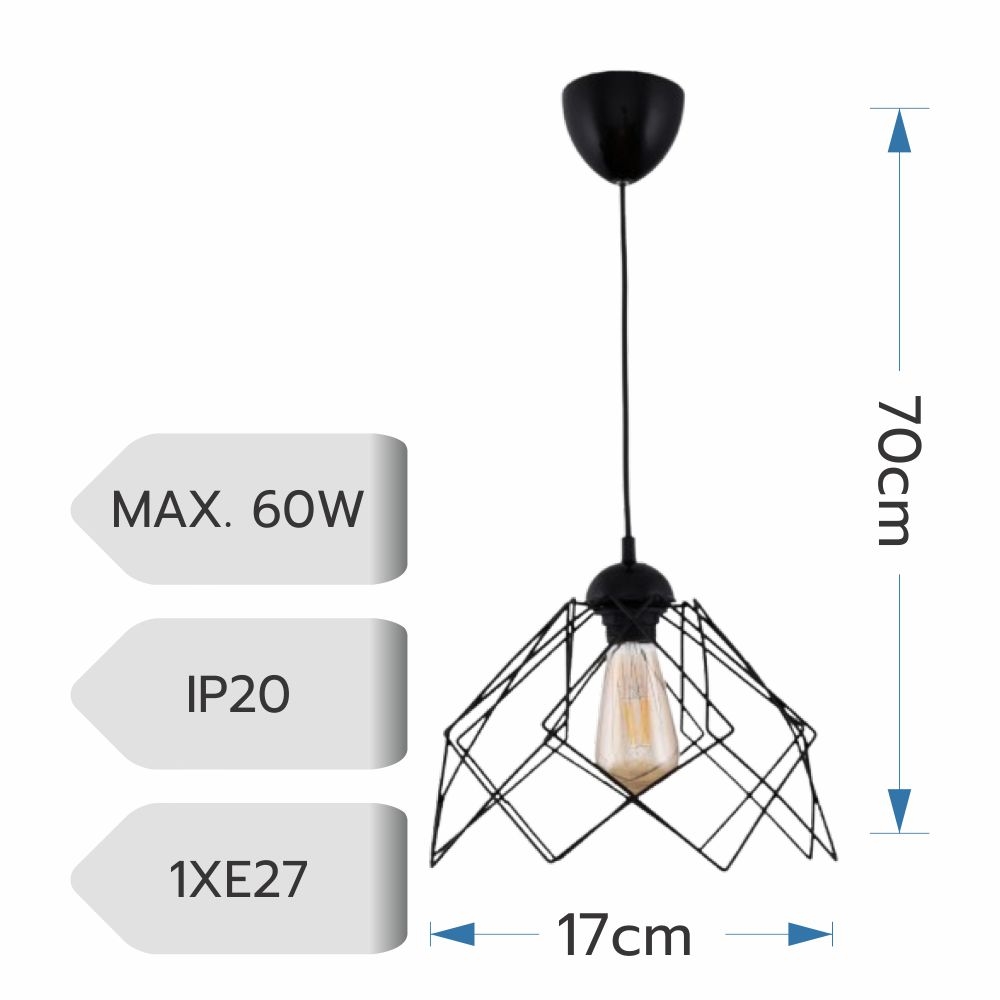 Structura metalică neagră pune în evidență becul decorativ, oferind un iluminat ambiental cald și plăcut. Este un model potrivit pentru interioare moderne, industriale sau minimaliste, unde fiecare detaliu contează. Conform descrierilor de produs similare, acest tip de lustră oferă un stil modern-industrial și este ideal pentru spații contemporane.