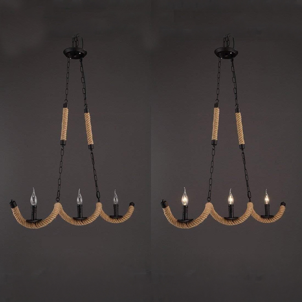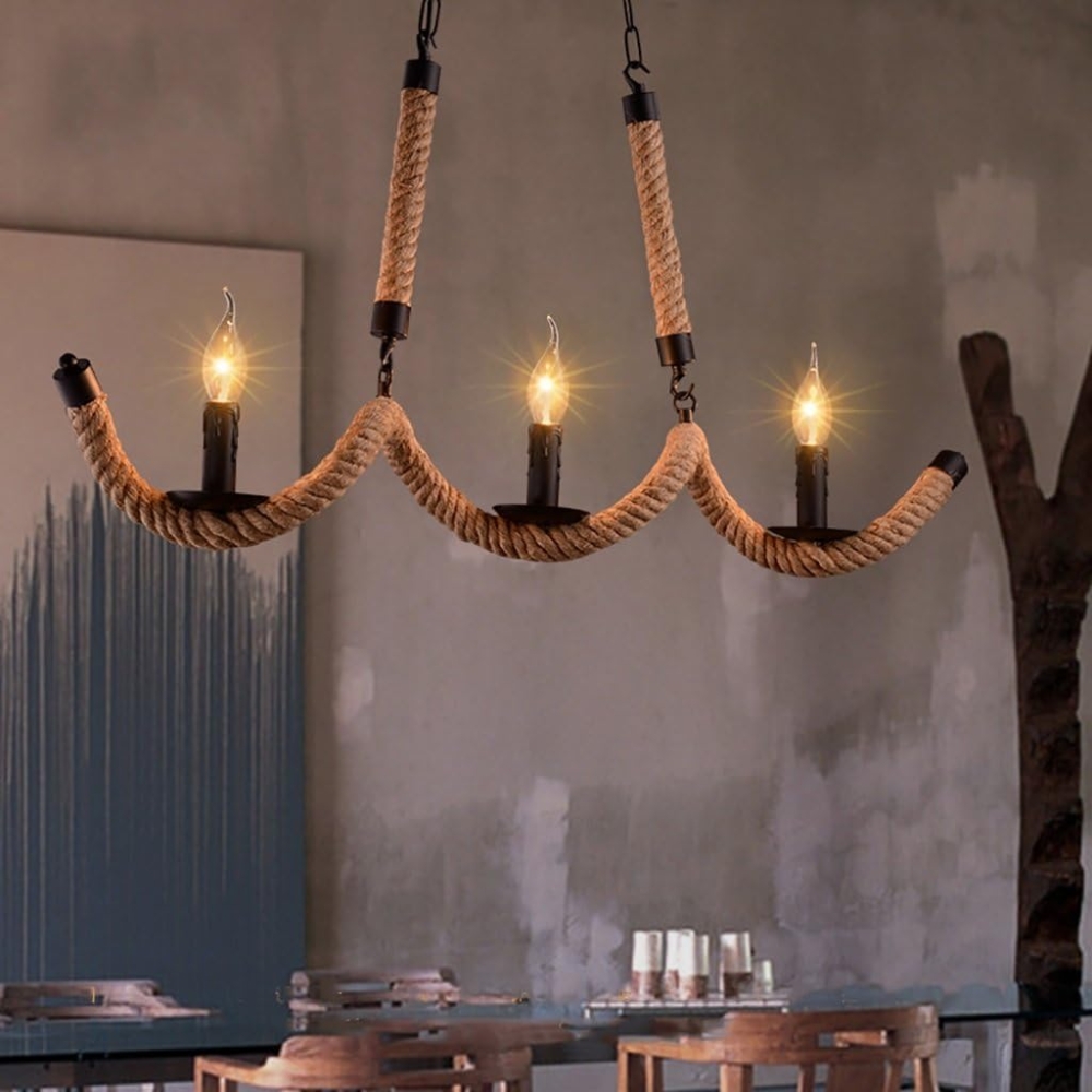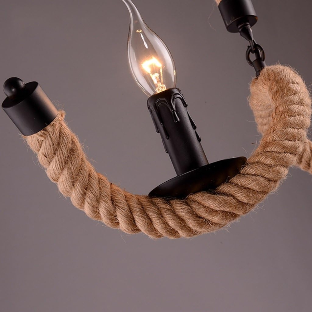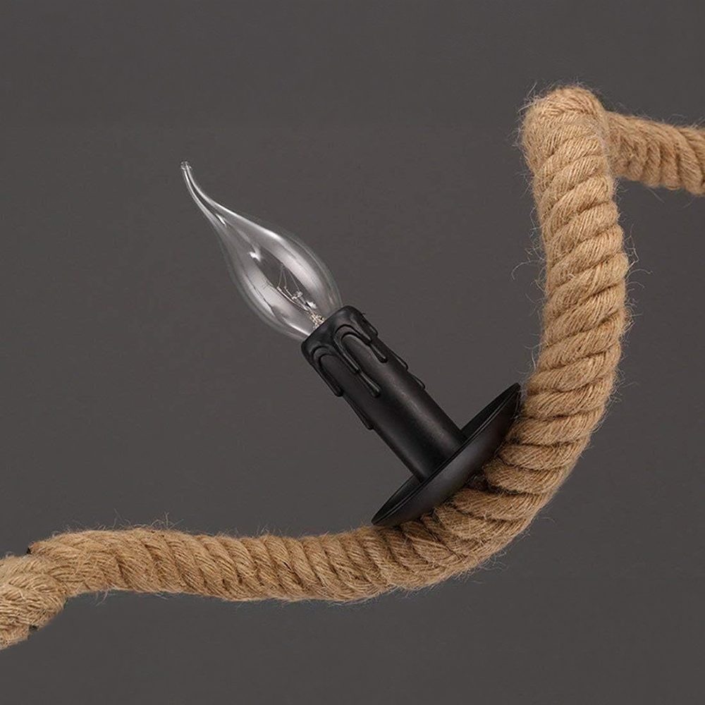 Lustră rustică industrială cu sfoară și 3 becuri E27