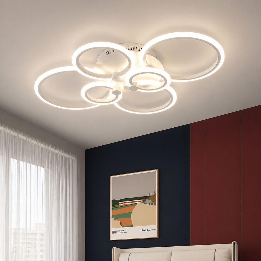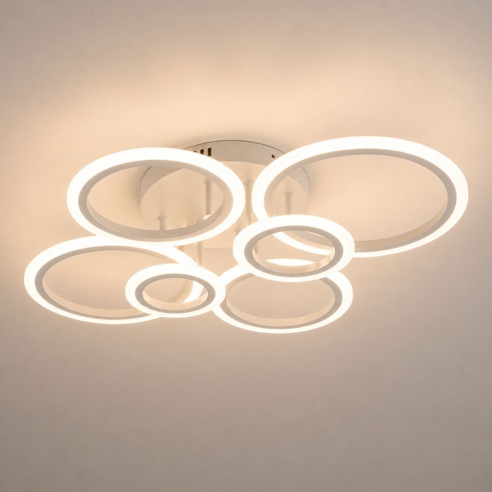 Lustra LED Lighting Ring 132W, 6 cercuri, dimabila, cu telecomanda, alba