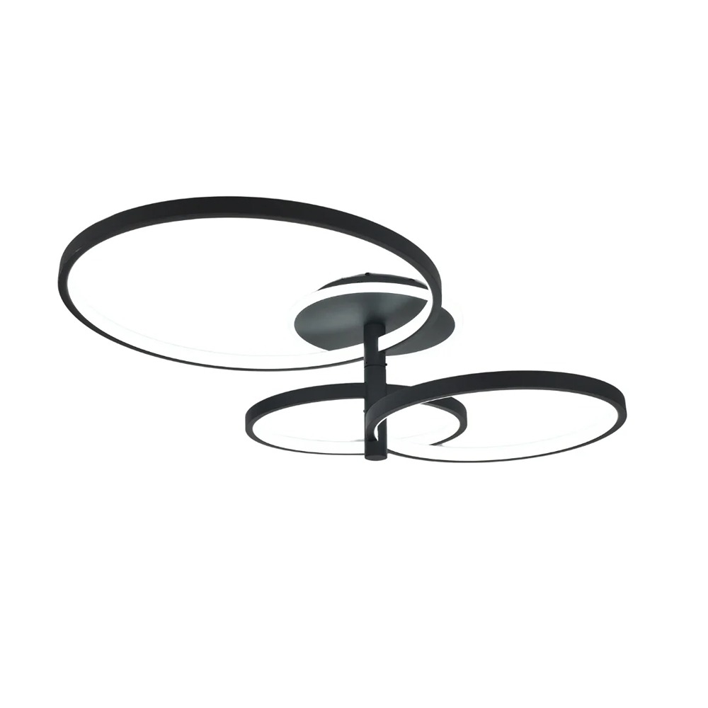Lustra LED, 3 Cercuri Cu Telecomanda, 3000K/4000K/6500K, 100W, Negru