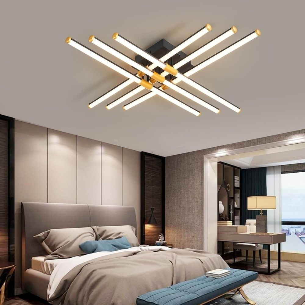 Lustra LED ACR-8069 transforma orice incapere intr-un spatiu elegant si modern. Cu 6 brate lungi dispuse in forma de X si finisaje rafinate negru-auriu, aceasta lustra aduce un plus de stil in dormitor, living sau spatii comerciale. Este dotata cu telecomanda, permitand reglarea intensitatii si a temperaturii de culoare, de la lumina calda la rece, pentru a crea ambientul perfect oricand ai nevoie.