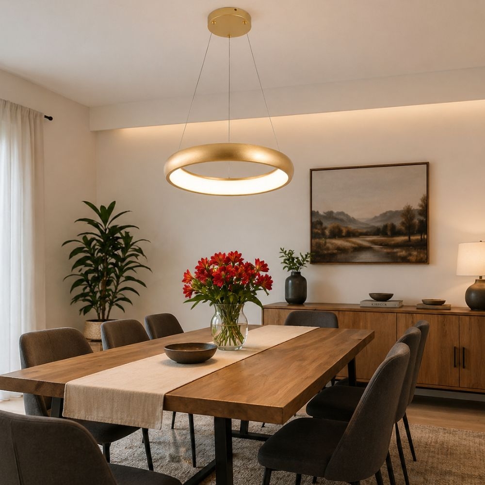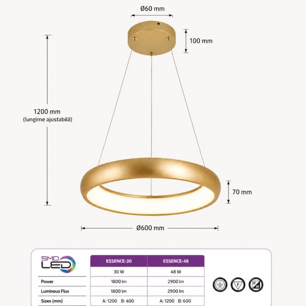 Lustra LED HOROZ ESSENCE-48, 48W, 4000K este un corp de iluminat modern premium, proiectat pentru spatii unde este necesara o iluminare puternica, combinata cu un design elegant.