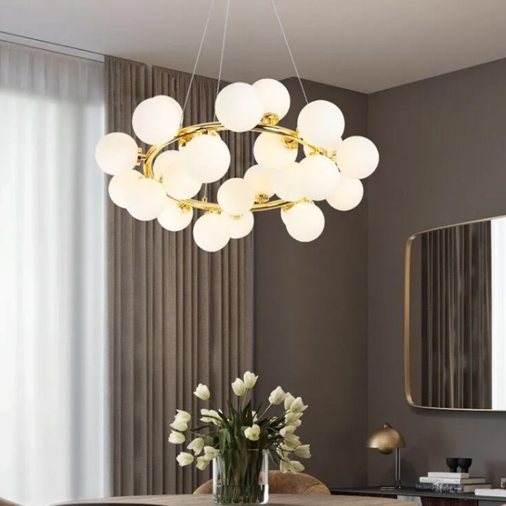 Lustra Modern Glowing este potrivita pentru livinguri mari, dining, hoteluri, restaurante sau spatii comerciale elegante, aducand un plus de lux si luminozitate.