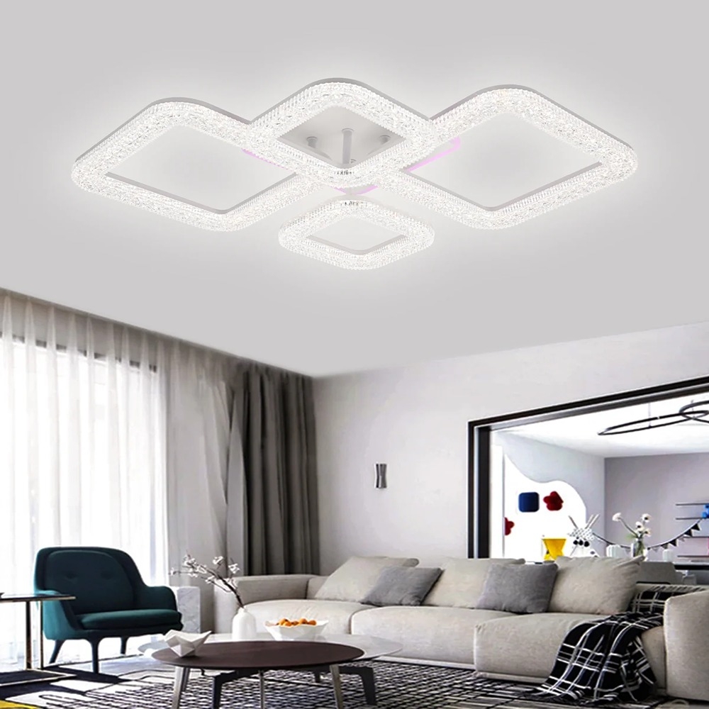 Lustra LED RGB, 4 Patrate Cu Telecomanda, 3 Functii, Intensitate Reglabila, 67W, Alb - Lustre LED >