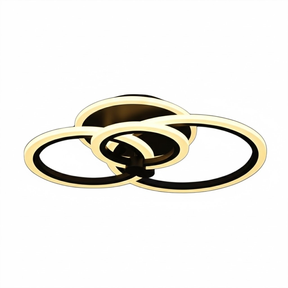 Lustra ofera trei tipuri de lumina – 3000K, 4000K si 6500K – precum si reglaj al intensitatii direct din telecomanda. Finisajul negru si designul modern cu forme circulare o fac potrivita pentru living, dormitor, birou sau spatii comerciale. Functioneaza la tensiune standard si poate fi controlata atat din telecomanda, cat si din intrerupatorul clasic.
