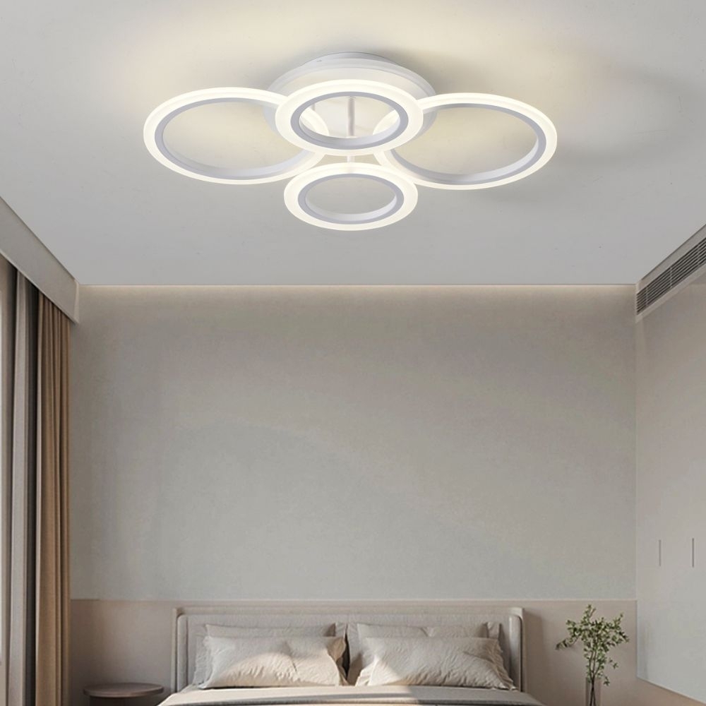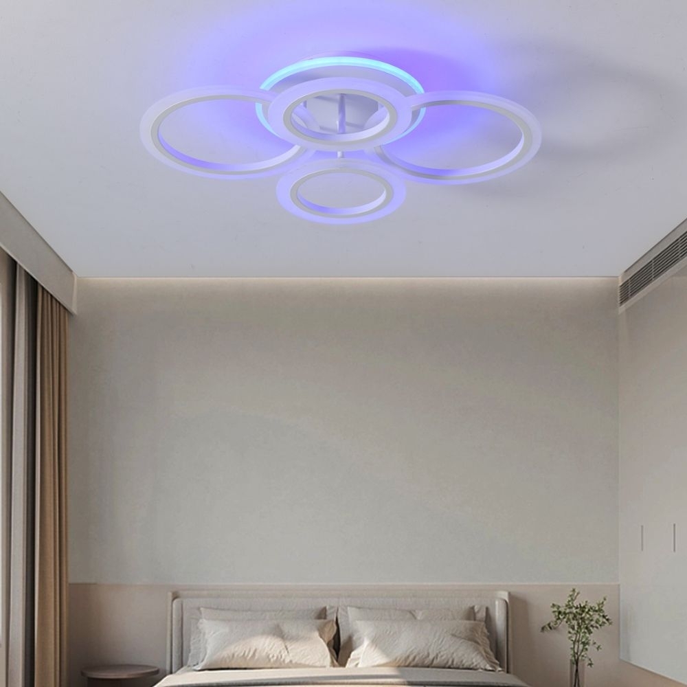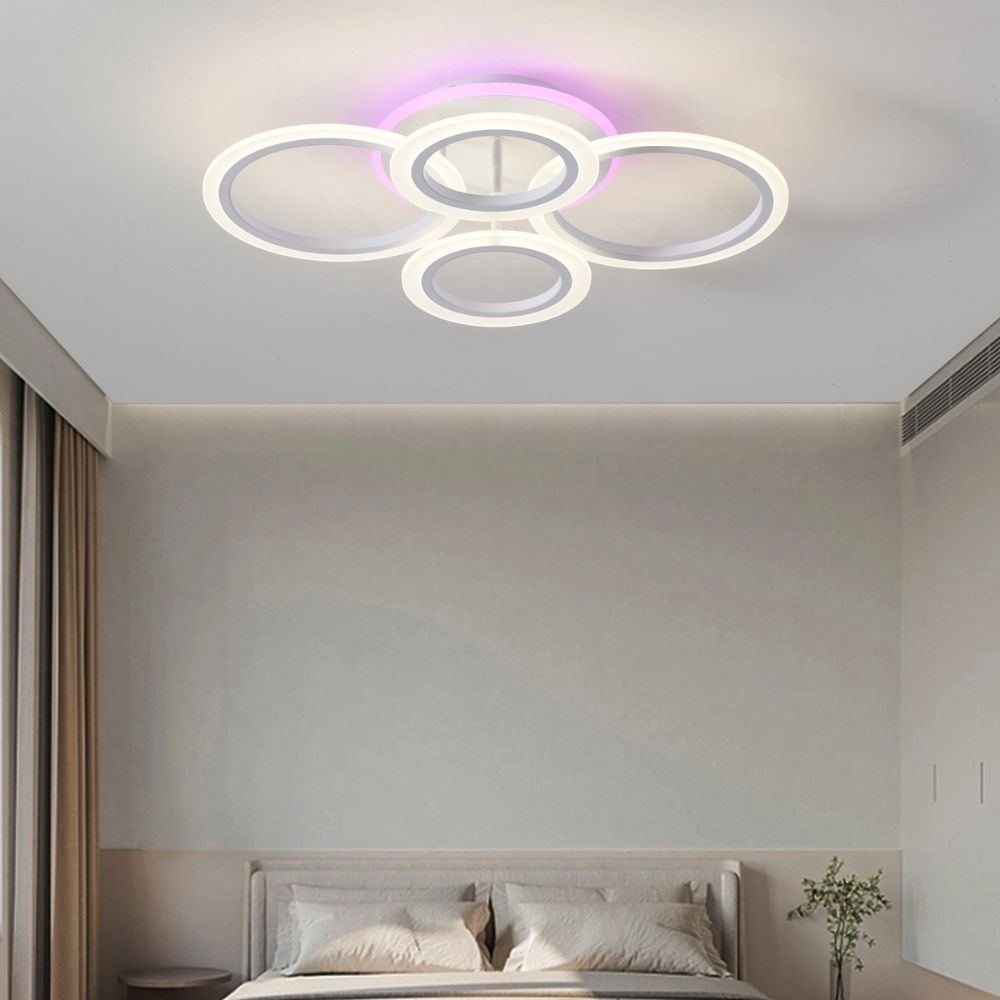 Lustra LED cu telecomanda 104W ACR-8066 Alba, design Circle RGB, 4 brate, lumina reglabila 3000K-6500K – Efect Ambient si Iluminat Inteligent pentru Spatii Moderne