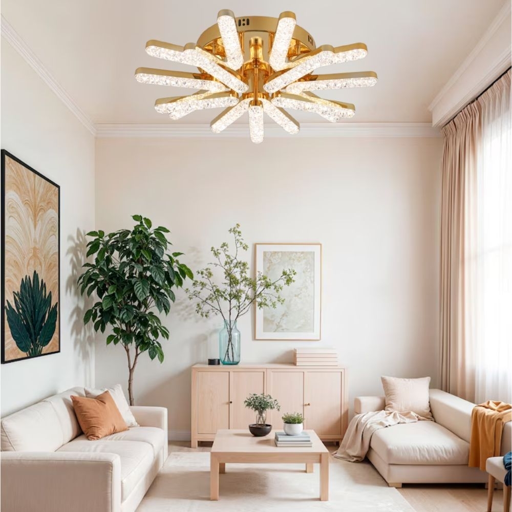 ACR-8089 este o lustra LED spectaculoasa cu 15 brate cristaline dispuse in forma ramificata, oferind un efect vizual deosebit si o iluminare intensa. Cu o putere de 150W si un flux luminos de 10.500 lumeni, este ideala pentru livinguri spatioase, dininguri sau receptii elegante. Finisajul auriu si telecomanda inclusa completeaza perfect experienta, permitand ajustarea luminii in functie de preferinte.