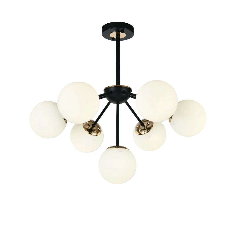 Lustra suspendata neagra RF-N36368-7BK, 7 surse E27, cu abajururi din sticla