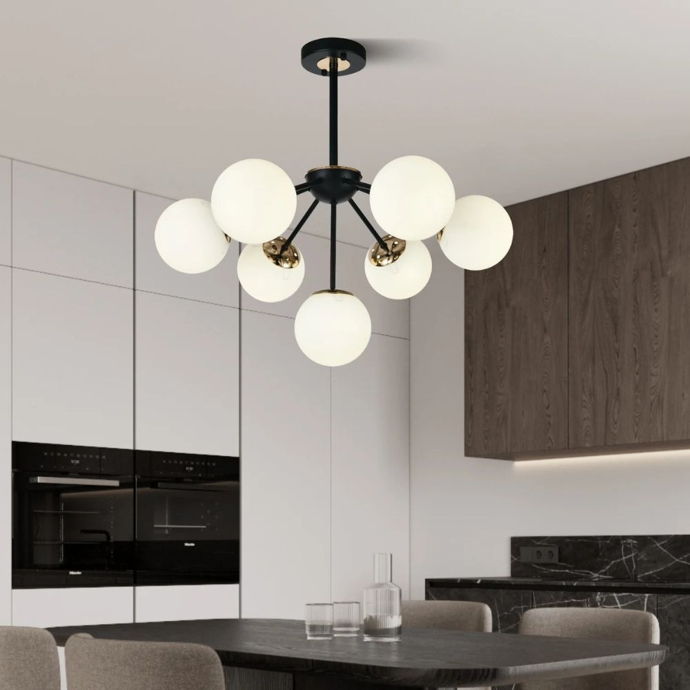 Designul sau minimalist, dar sofisticat, o face potrivita pentru livinguri, dininguri, birouri sau spatii comerciale contemporane. Abajururile din sticla asigura o difuzie uniforma a luminii, creand o atmosfera placuta si calda.