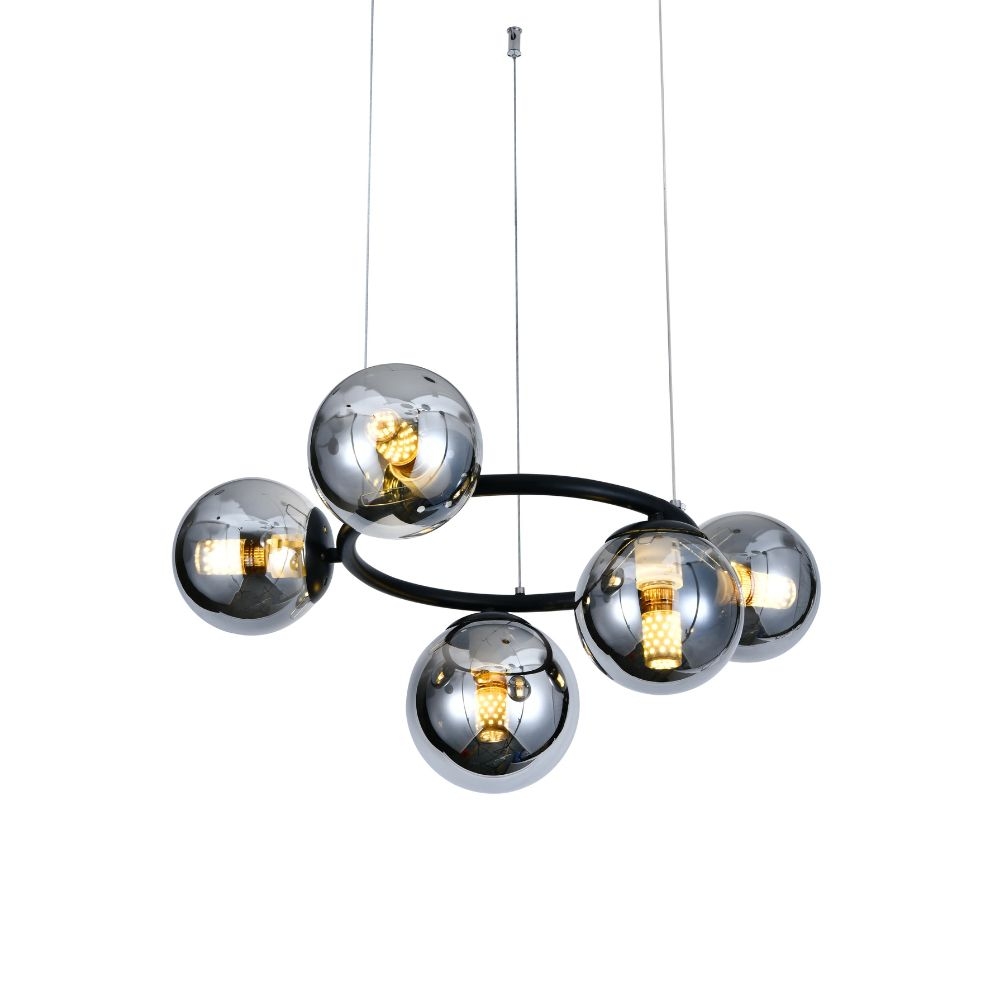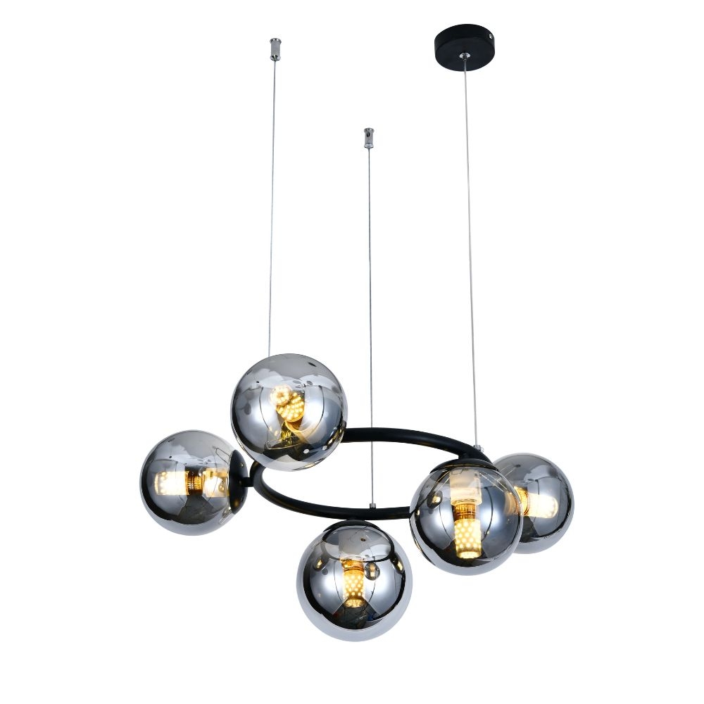 Lustra suspendata negru/crom RF-N6805-5, 5 surse E27, cu abajururi din sticla