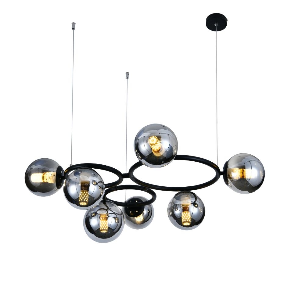 Lustra suspendata negru/crom RF-N6805-7, 7 surse E27, cu abajururi din sticla