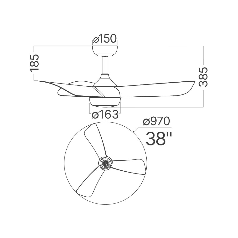 ventilator compact 38 inch, iluminat LED integrat, 3 temperaturi de culoare, telecomanda inclusa, design simplu si versatil, consum redus, ideal pentru camere medii