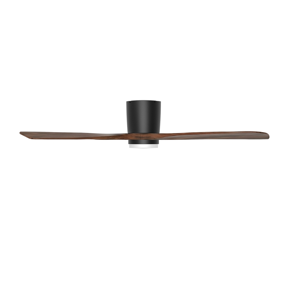 ventilator 48 inch eficient, iluminat LED integrat, 3 temperaturi de culoare, telecomanda inclusa, design premium negru cu lemn, iluminare uniforma, consum redus, durata lunga de viata
