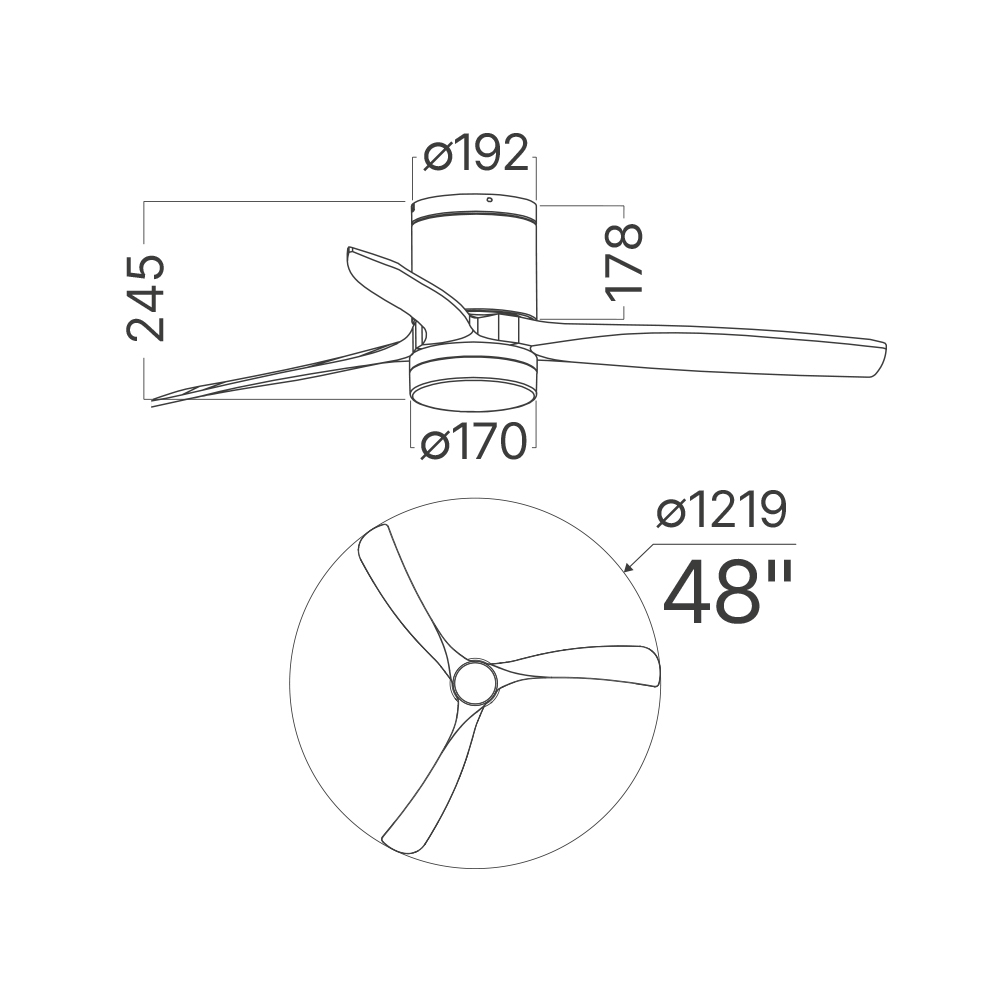 Dimensiunea de 48 inch asigura o ventilatie eficienta, fiind potrivita pentru living, dormitor sau open space.
