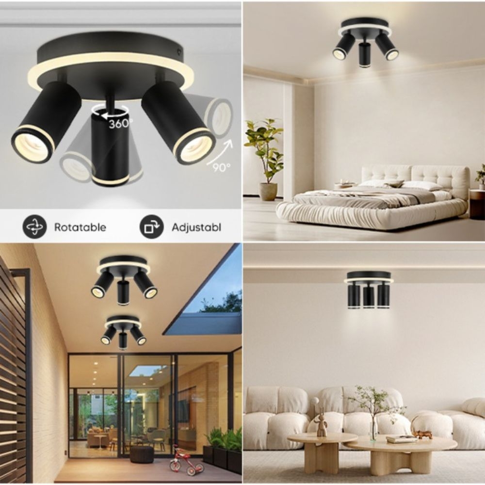 Plafoniera LED orientabila FSL-CH8003-3 BK este conceputa pentru iluminat interior eficient si flexibil, fiind ideala pentru spatii rezidentiale precum living, dormitor, bucatarie, hol, birou sau camera copilului. Designul rotund, finisajul negru si combinatia dintre spoturi orientabile si baza luminata asigura un iluminat uniform si bine directionat.