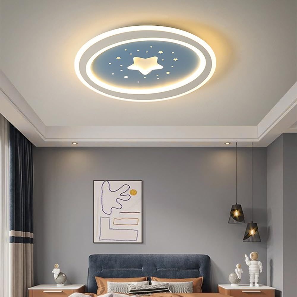 Descoperă "Celestial Whisper", o lustră ovală albastră ce aduce splendoarea cerului nopții direct în camera copilului. Cu un design inspirat din vastitatea cosmosului, această piesă de iluminat este punctul focal perfect pentru orice spațiu destinat micuților visători. Cu o putere de 100W și un diametru de 50 cm, "Celestial Whisper" îmbină frumusețea stelelor cu funcționalitatea modernă, creând un mediu liniștit și inspirațional pentru odihnă și joacă.