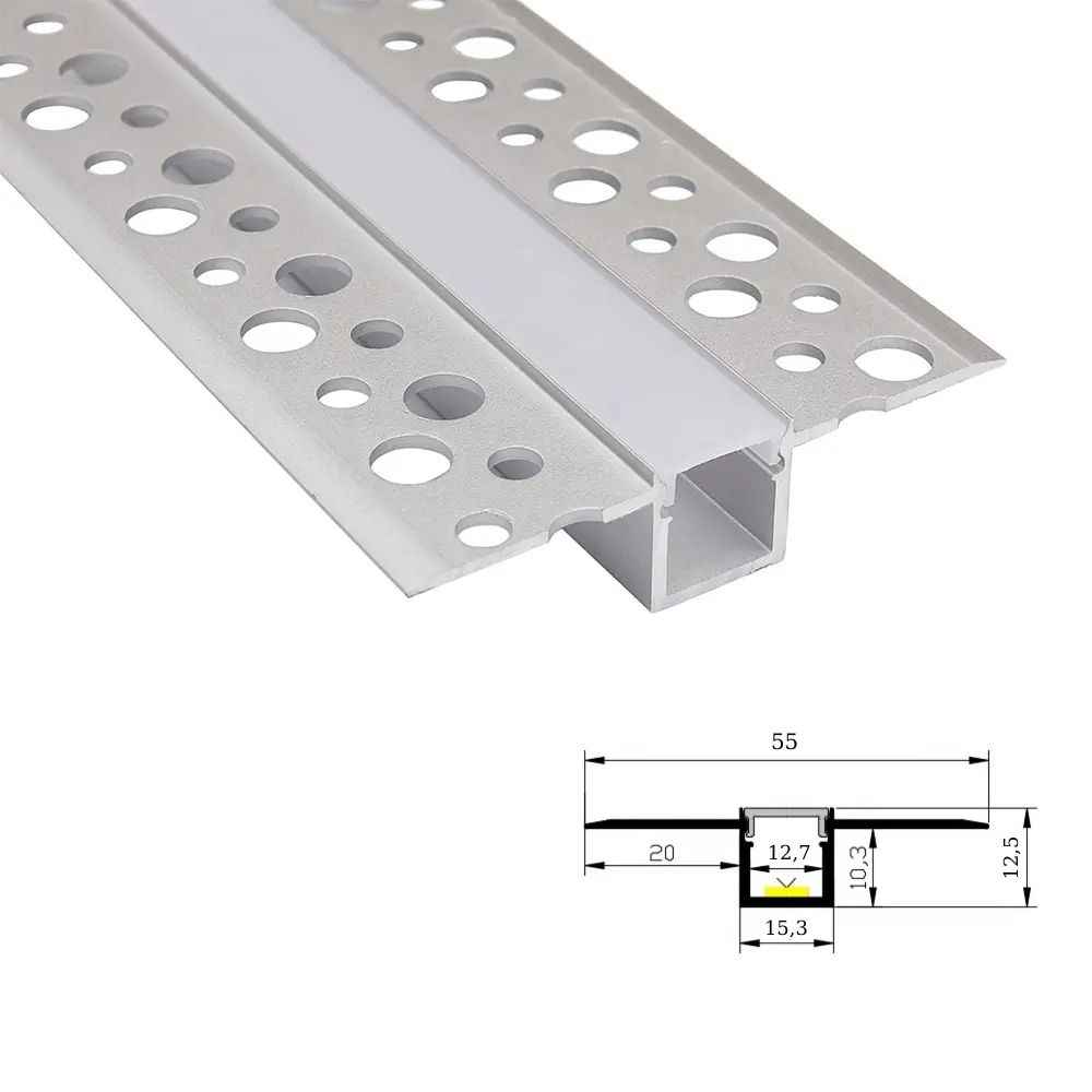 Profilul LED 120-001-1006-010, realizat din aluminiu argintiu, este conceput pentru montaj sub tencuiala si permite integrarea estetica a benzilor LED in pereti sau plafoane. Cu dimensiunile 55×15.3×12.5 mm (12.7 mm interior) si lungimea de 2 metri, acest profil ofera o solutie eleganta si profesionala pentru iluminat indirect sau decorativ.