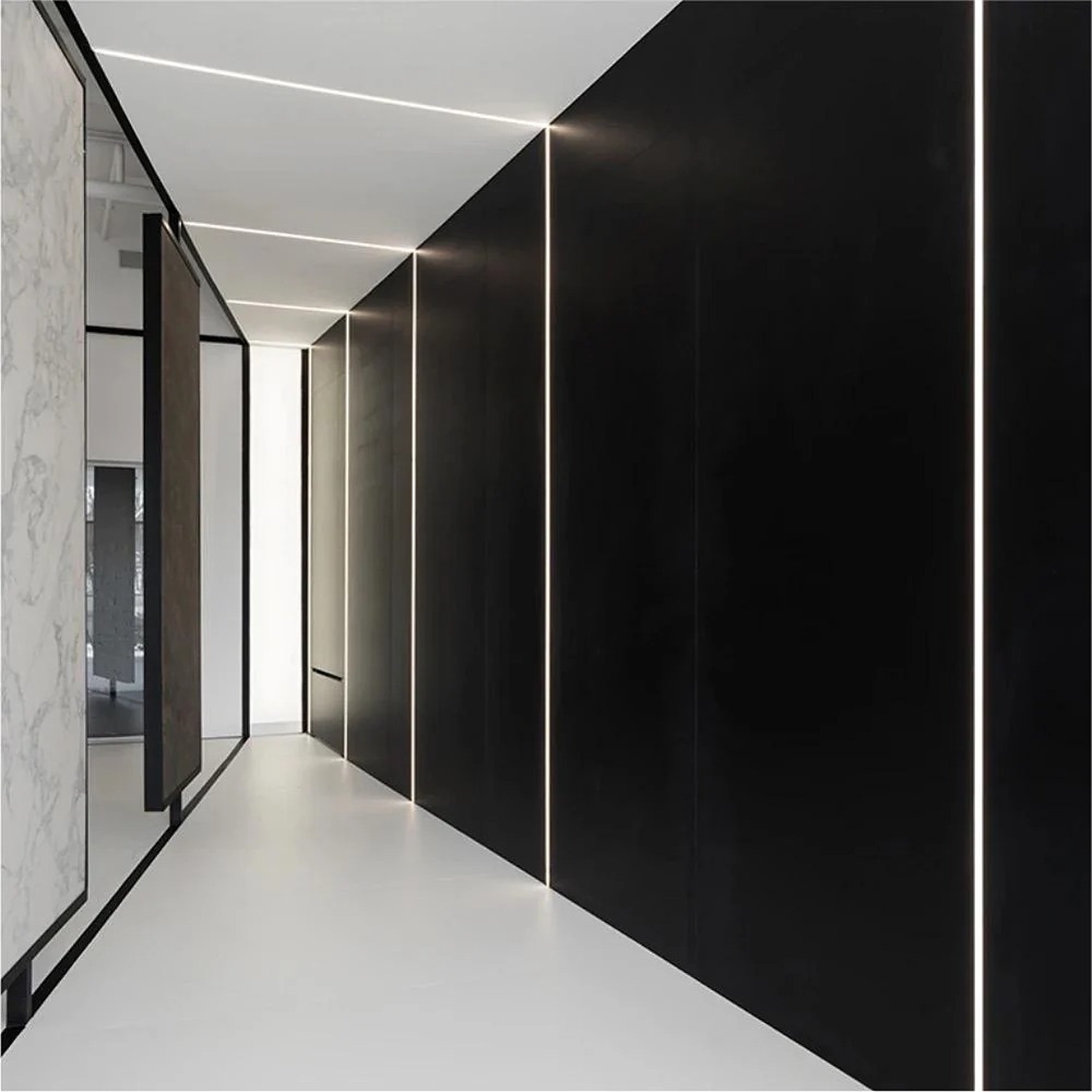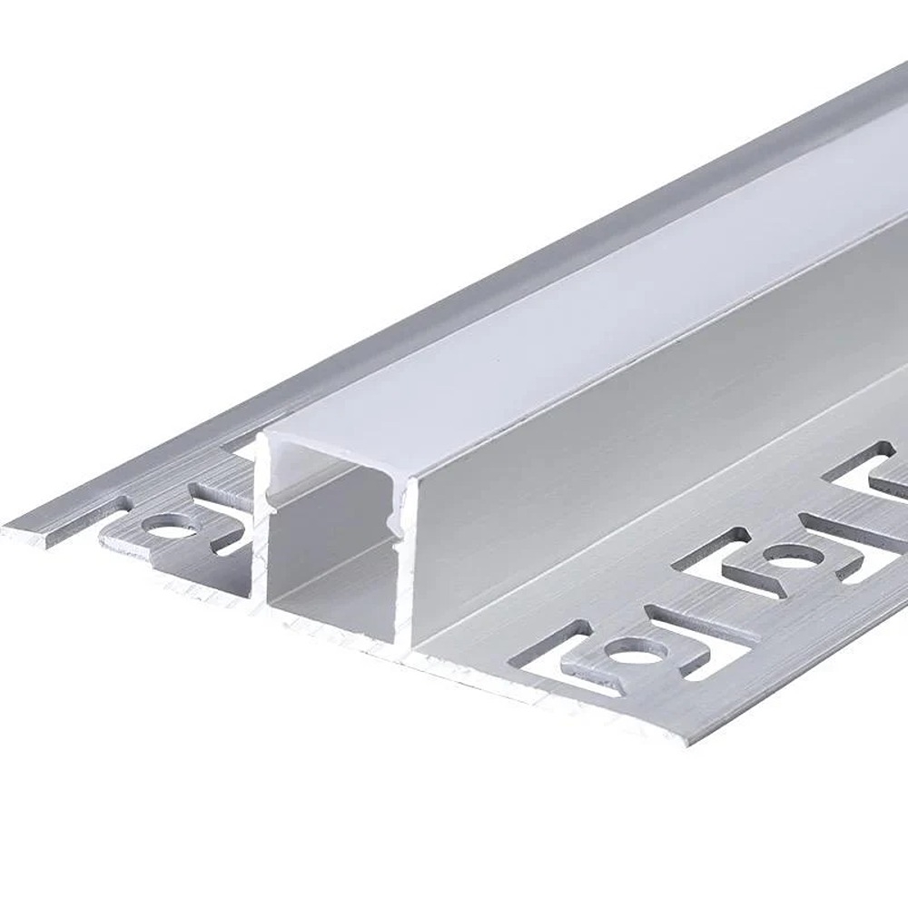 Se monteaza incastrat sub rigips sau in stratul de tencuiala. Se realizeaza un decupaj corespunzator, se fixeaza profilul cu adeziv sau suruburi, se introduce banda LED (12V, 24V sau 220V) in canalul interior, iar dispersorul din plastic se aplica prin presare. Perfect pentru tavane, pereti sau zone de accent.