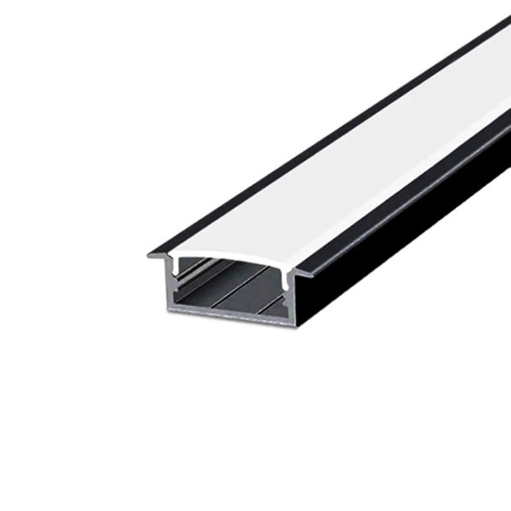 Profil LED încastrat din aluminiu, 2 metri, 24.2 mm lățime, compatibil benzi LED, PROFILE-R1 negru