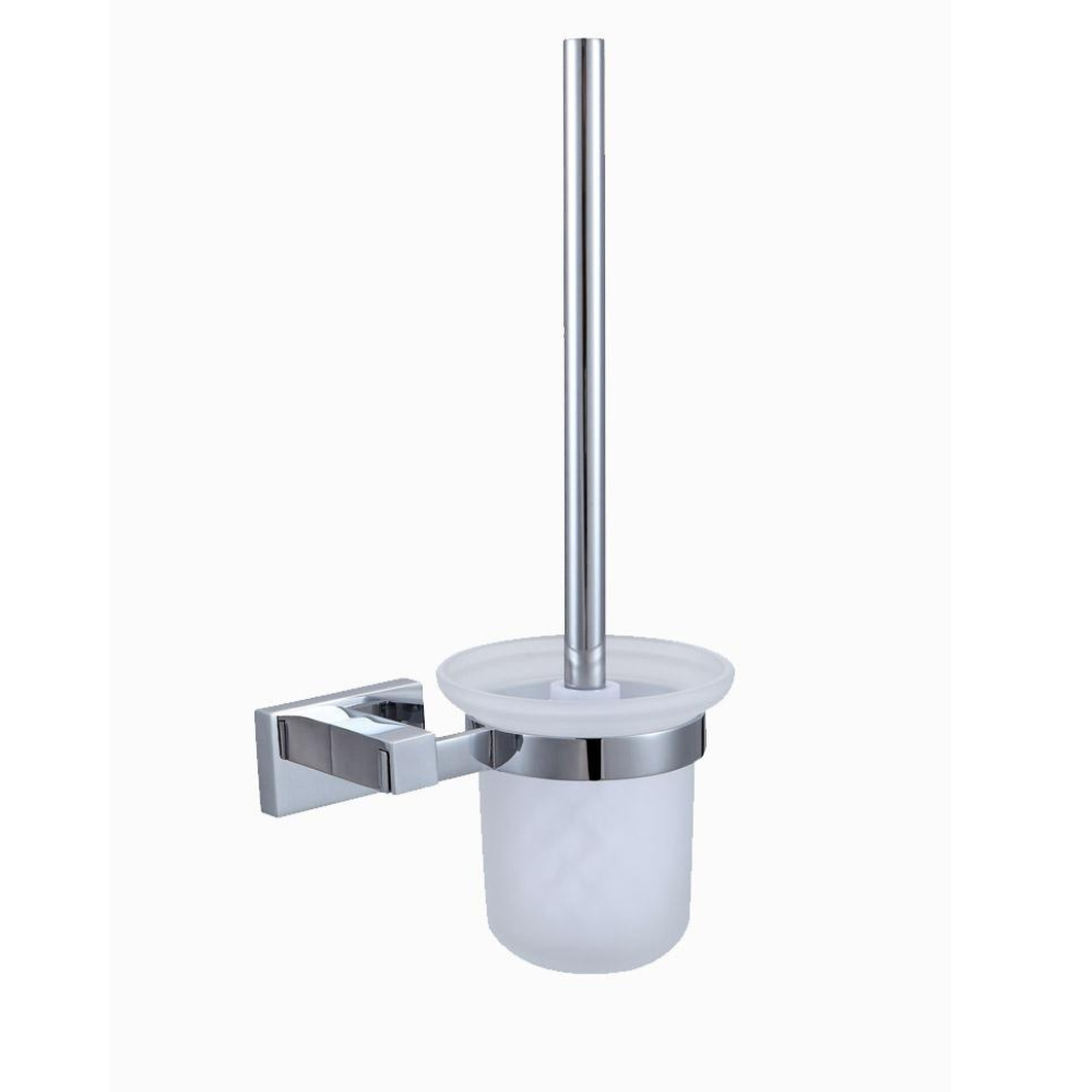 Acesta are un recipient din sticla alba, o perie cu maner si un suport de perete din metal cromat.